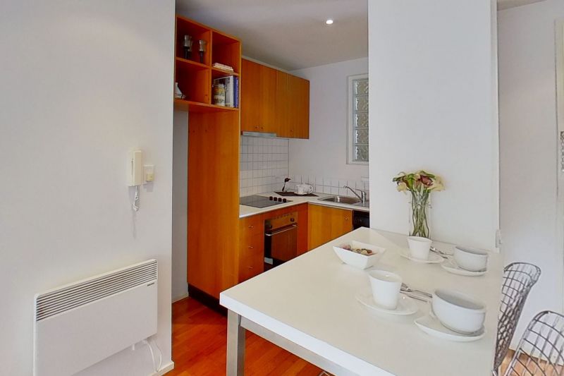 * Open plan kitchen, electric cooking, dishwasher, built-in cupboards