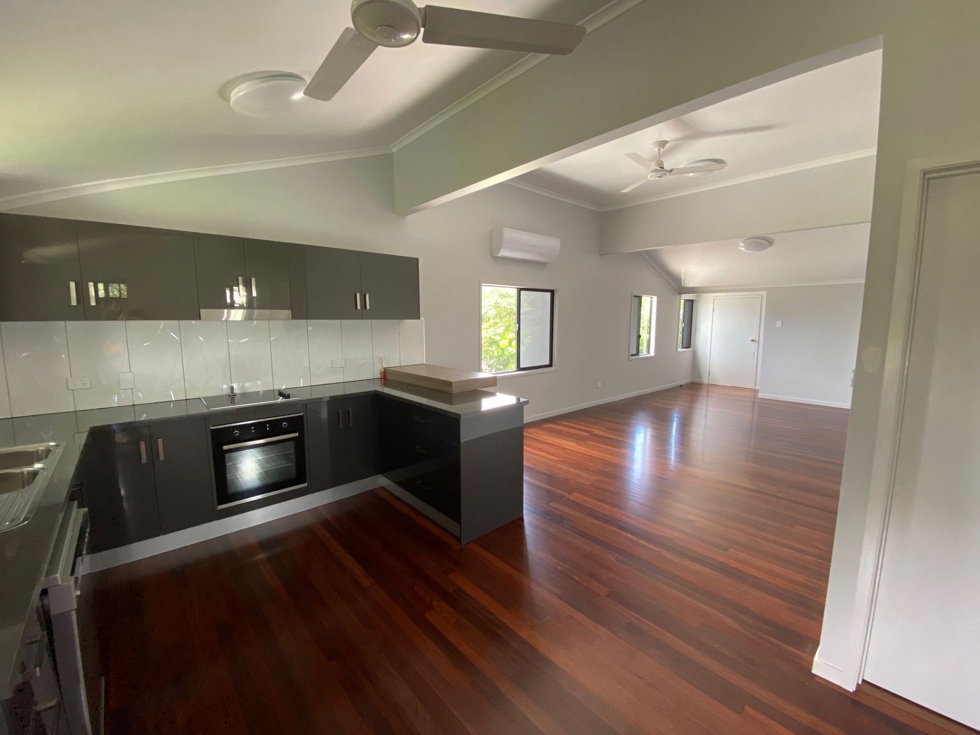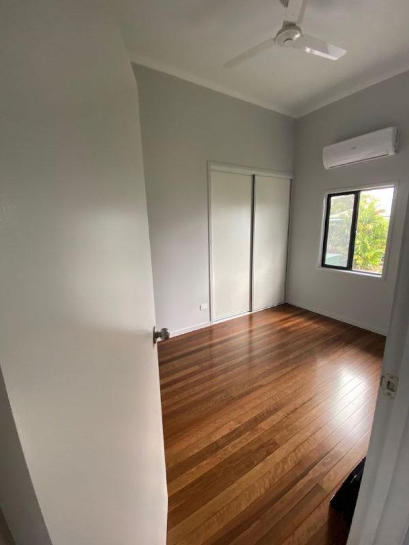 Newly fully renovated 3 Bed, 1 Office, 2 Bath High set house, walking distance to town and a stone throw to the beautiful Johnstone River. This house is all done with all new electrical and plumbing fixtures and fittings. Everything is done (UP STAIRS) new gyprock ceilings and walls, windows and security screens, built in cupboards in all rooms and office, walk-in linen press, new bathrooms, fully air-conditioned, new kitchen including paint and newly polished timber floors. (DOWN STAIRS) Fully engineered lift and re stump, new concrete slab except carport, partially fenced yard, 6x3 garden shed and all new external cladding and paint.
