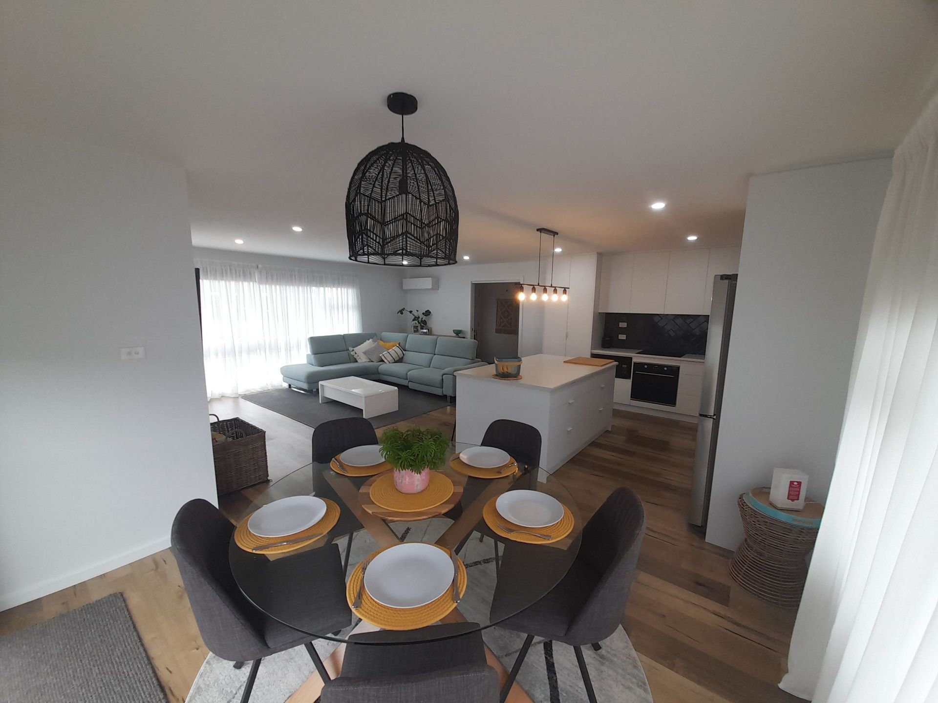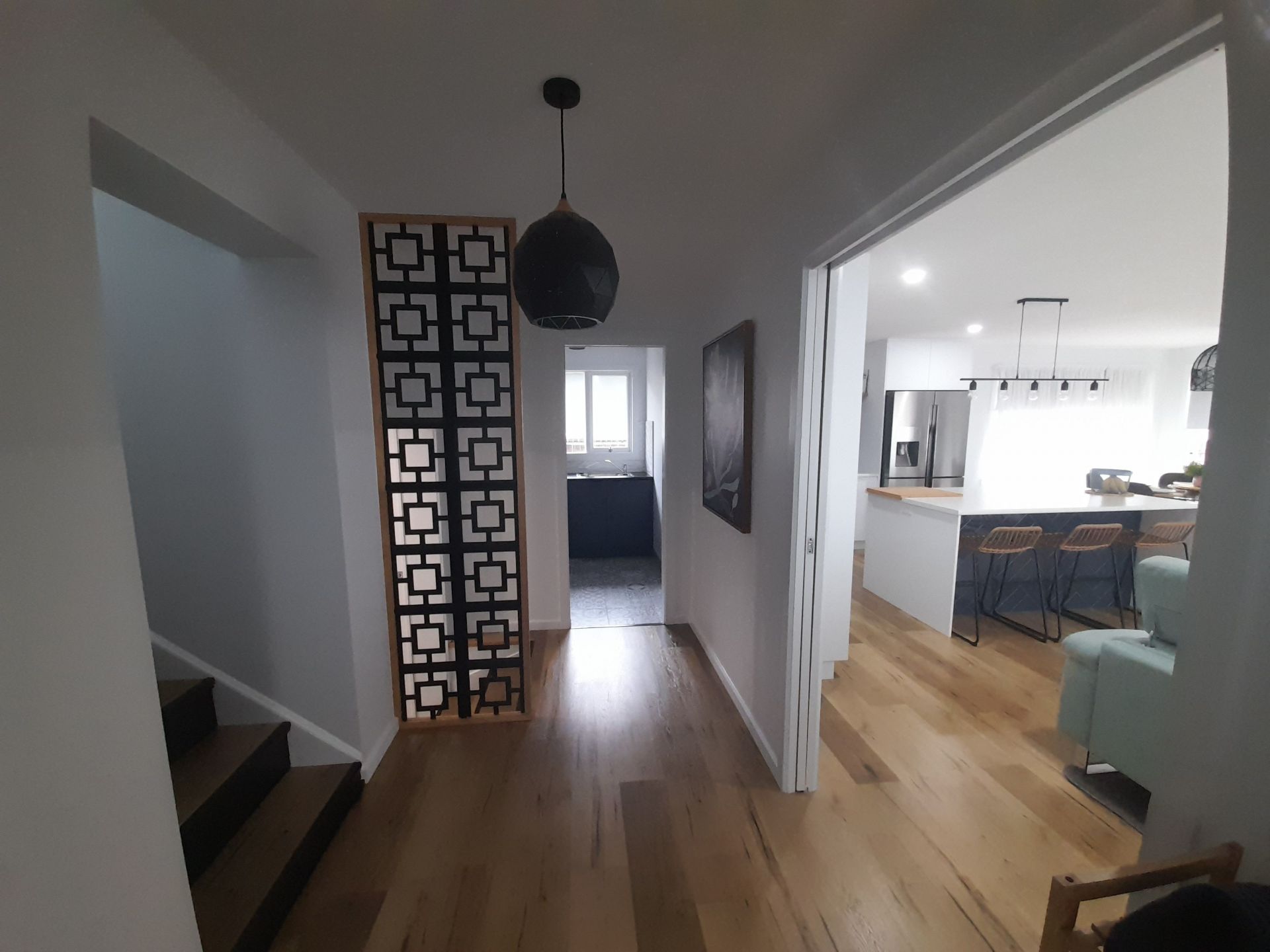 The main floor consists of laundry with built in's, large living, dining and kitchen. All brand new with plumbed fridge/freezer, dishwasher and stove / cooktop. Free standing wood fire and reverse cycle heat pump. Double glass slider leads out to the large deck and backyard.