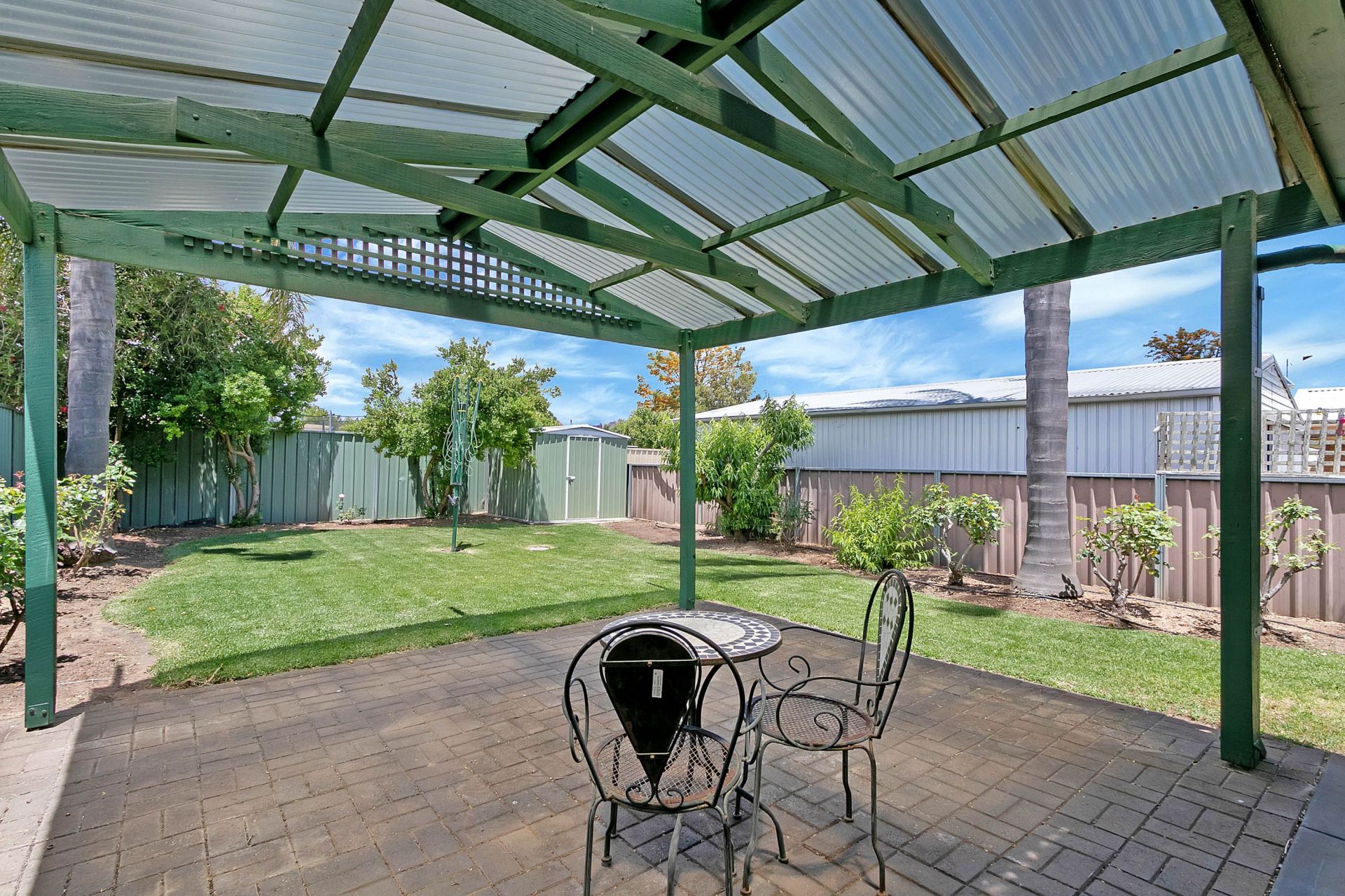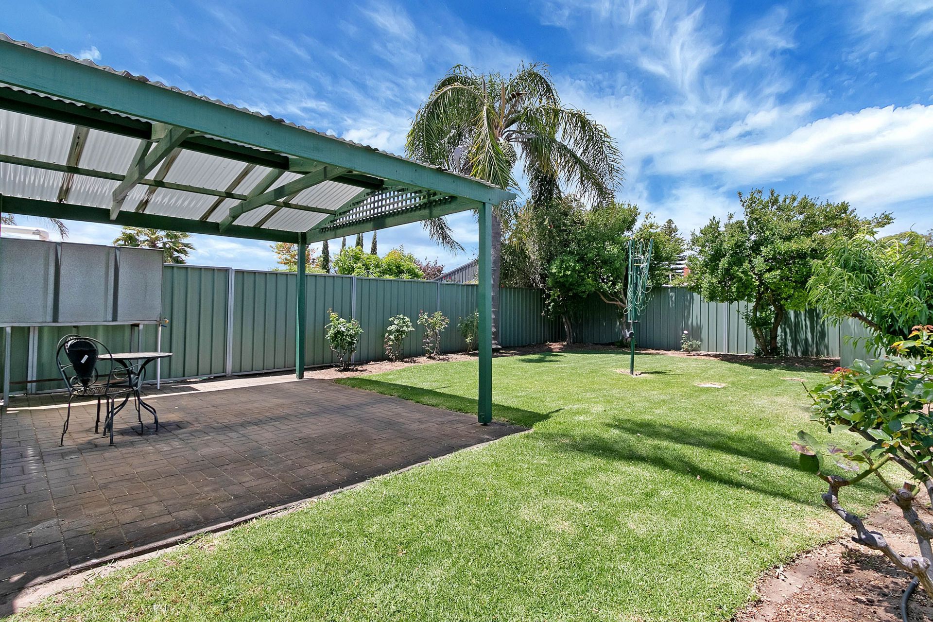- Established rear garden - roses, palms, natives and peach trees.