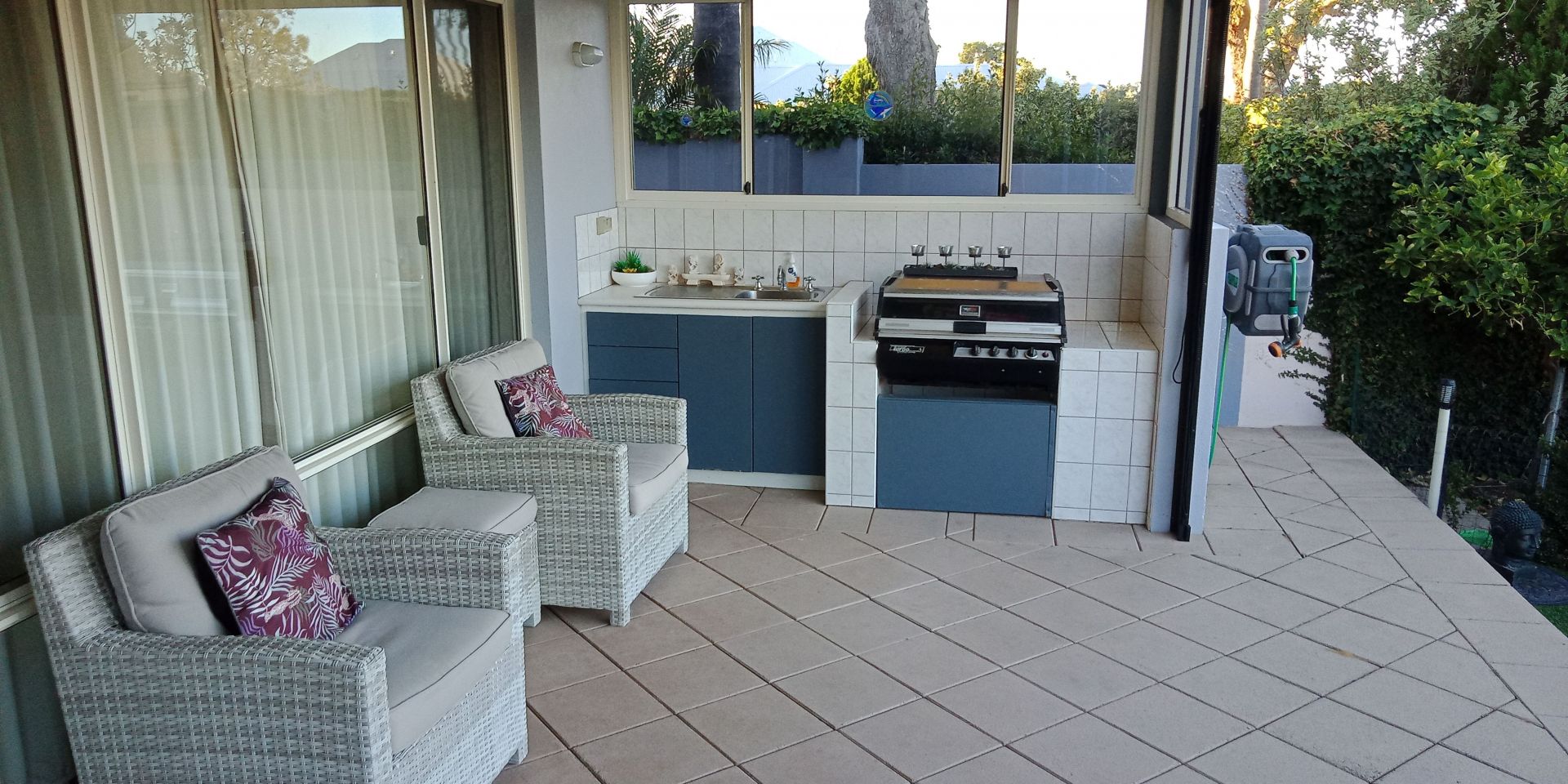 The undercover alfresco area has a built-in barbeque, sink with hot and cold water. This alfresco will accommodate the largest of families under the main roof and has pull-down blinds for added privacy.