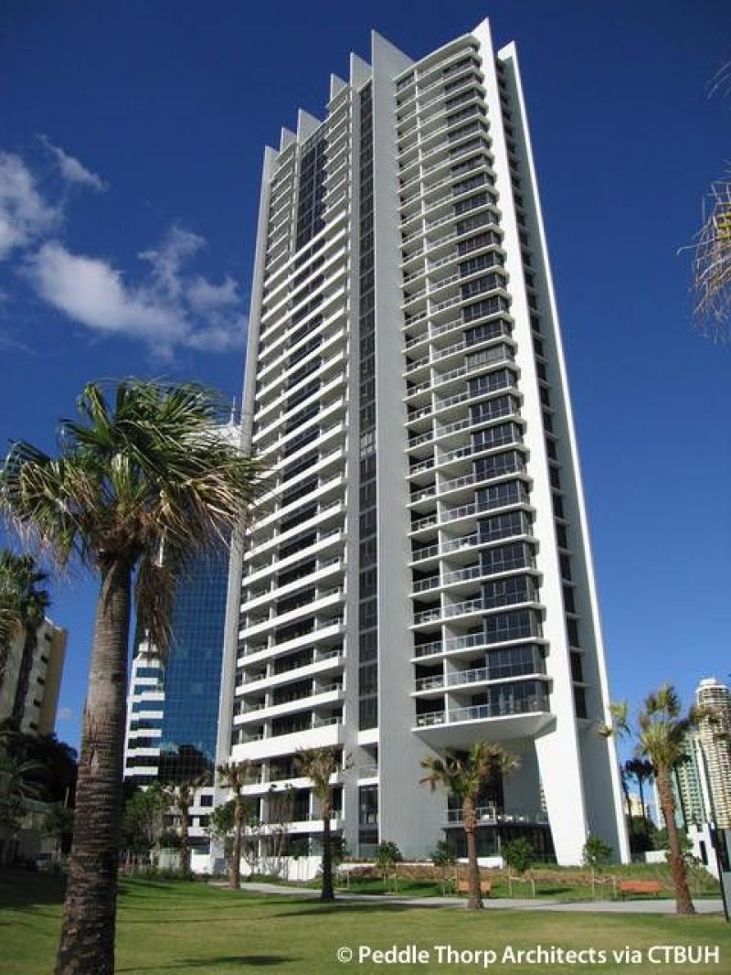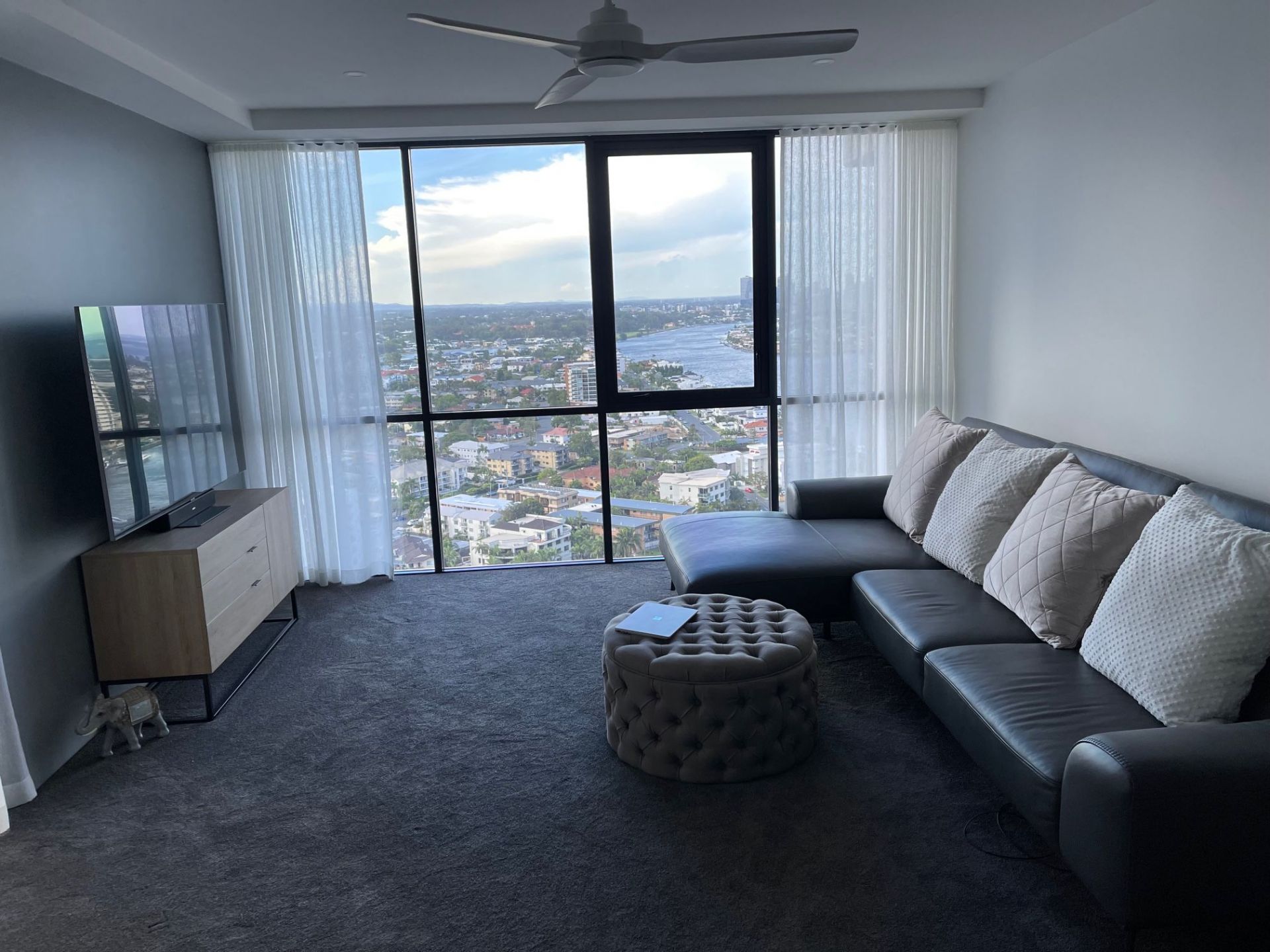 Ultra quiet '02' style apartment perched high on the 25th floor of Avalon Apartments. Completed in 2006 by Sunland Group, Avalon is a residential only building located down by the Surfers Paradise riverfront with sweeping views over a wide horseshoe of the Nerang river, north-west views from Southport Broadwater to the north and west over the Gold Coast Arts precinct and the hinterland - only 500m from the heart of Surfers Paradise!