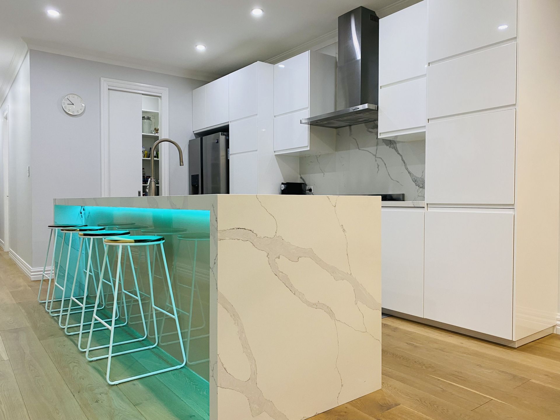 The large family area harbours an ultra modern and convenient kitchen with stone tops , granite double sink and Smeg 900mm oven. There is a butler's pantry complete with double sink, wall oven and build in microwave. Lots of storage makes this a very appealing part of the home.