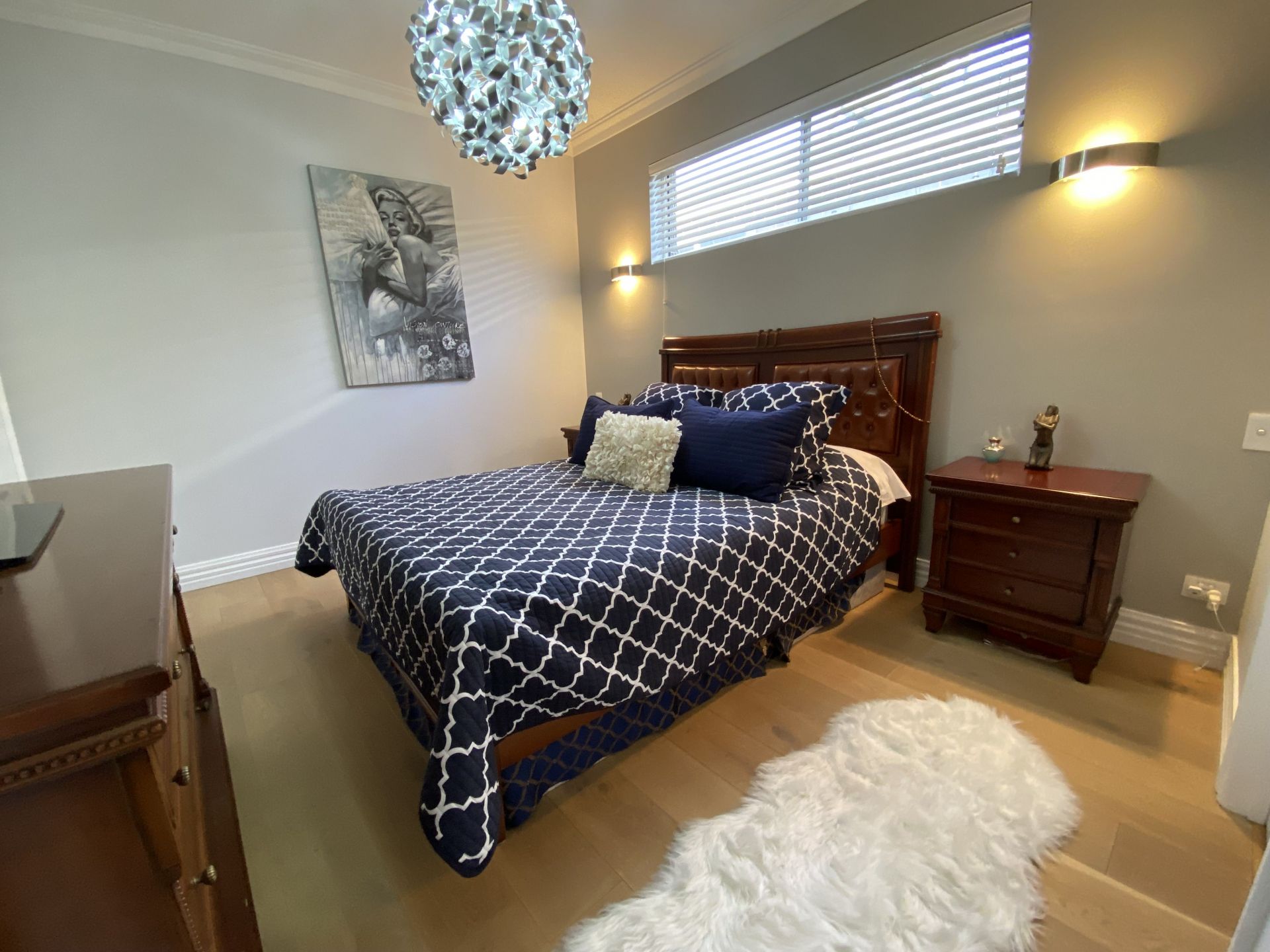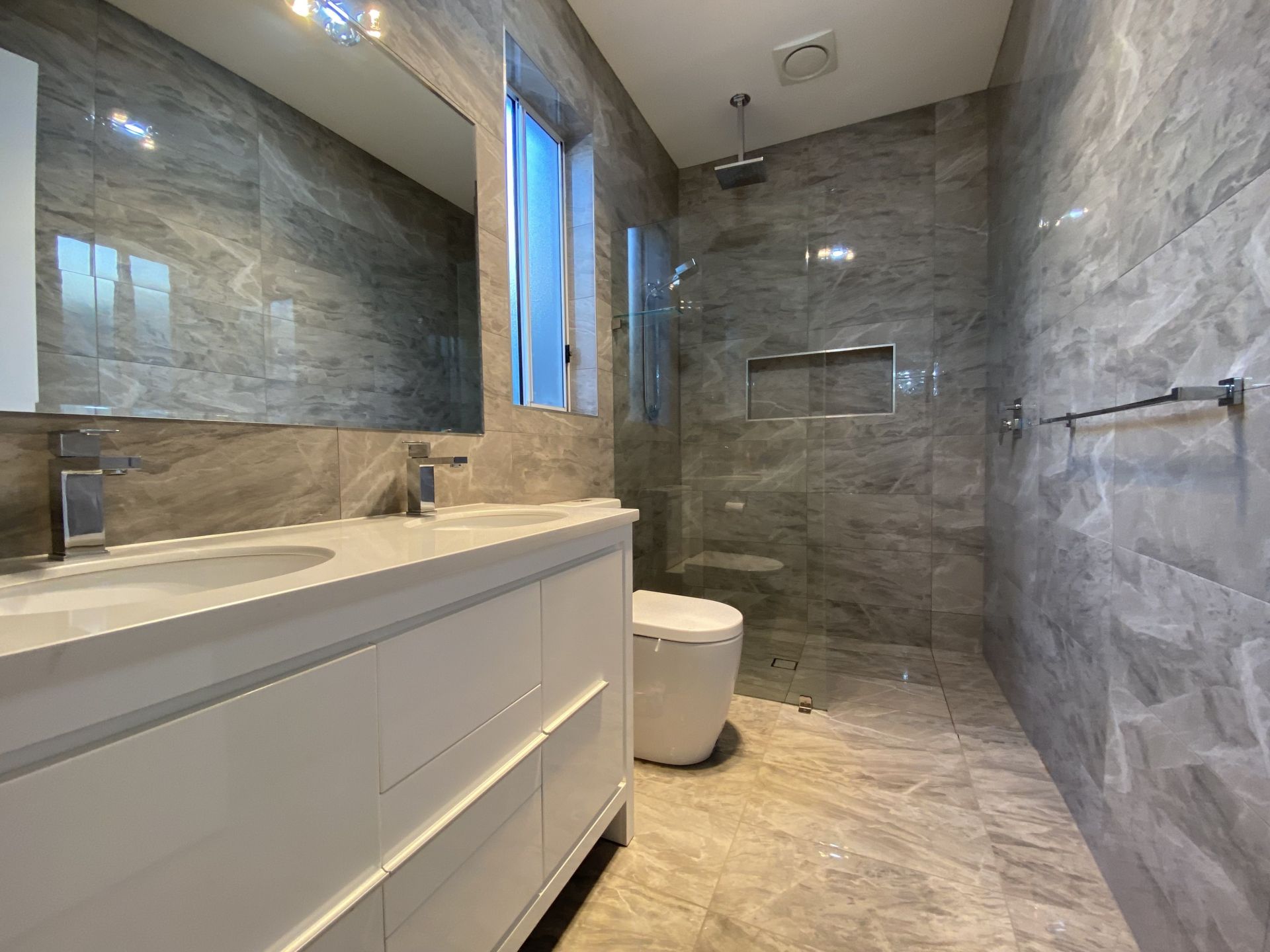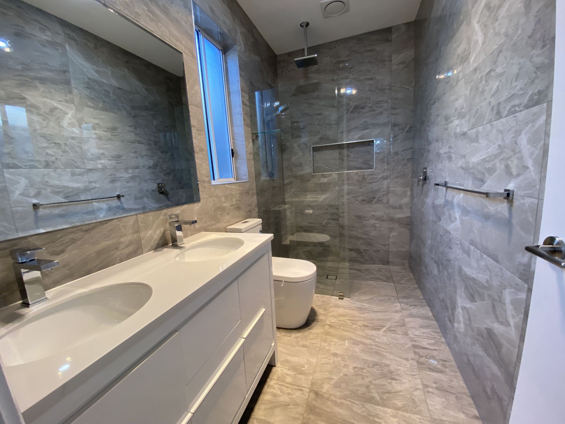 There are three bedrooms , main with WIR and en-suite ,which has stone top double vanity ,large shower and fully tiled with porcelain tiles.