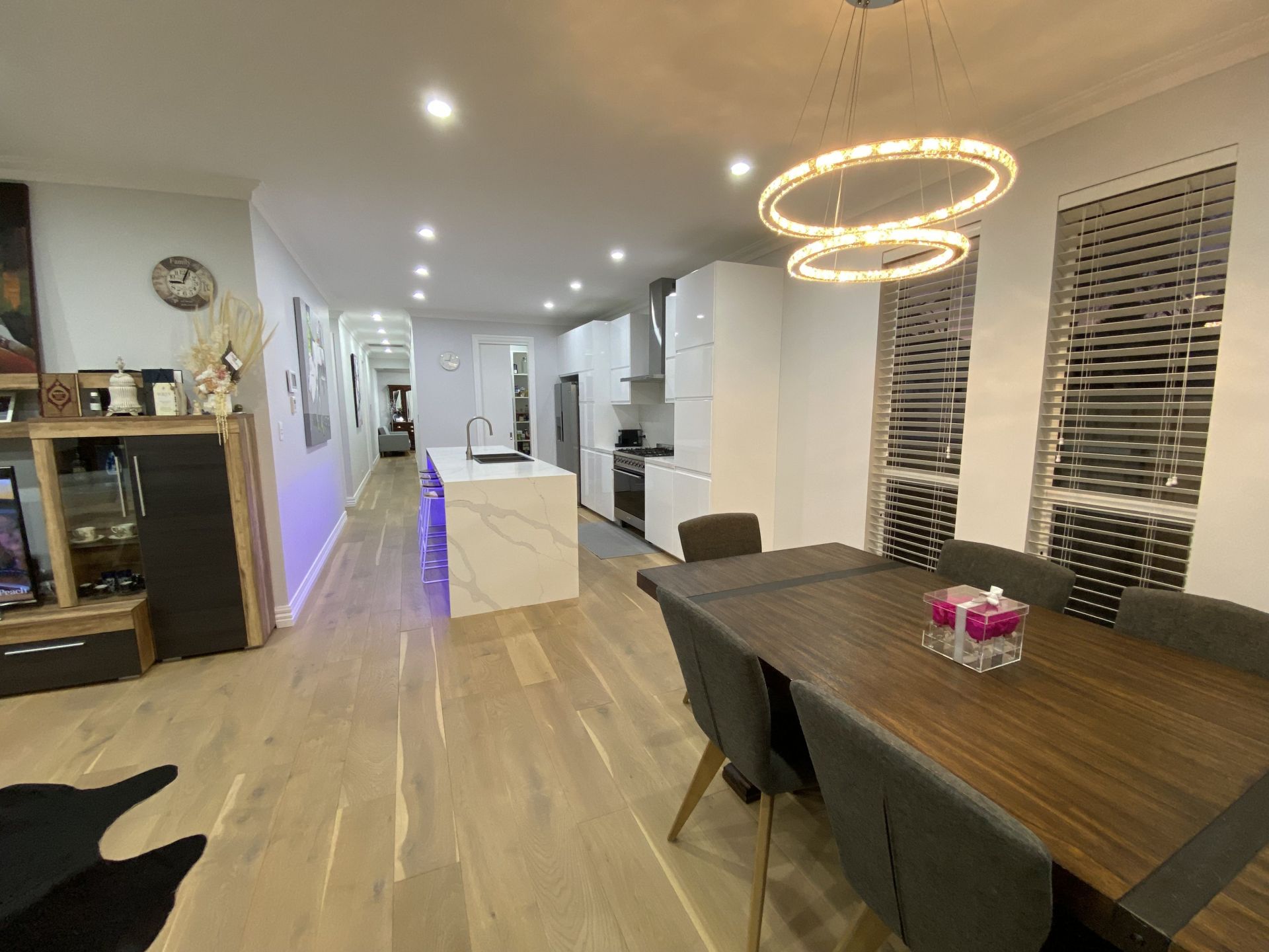 The home offers a wide entry foyer with crystal light pendant which leads to the formal lounge.