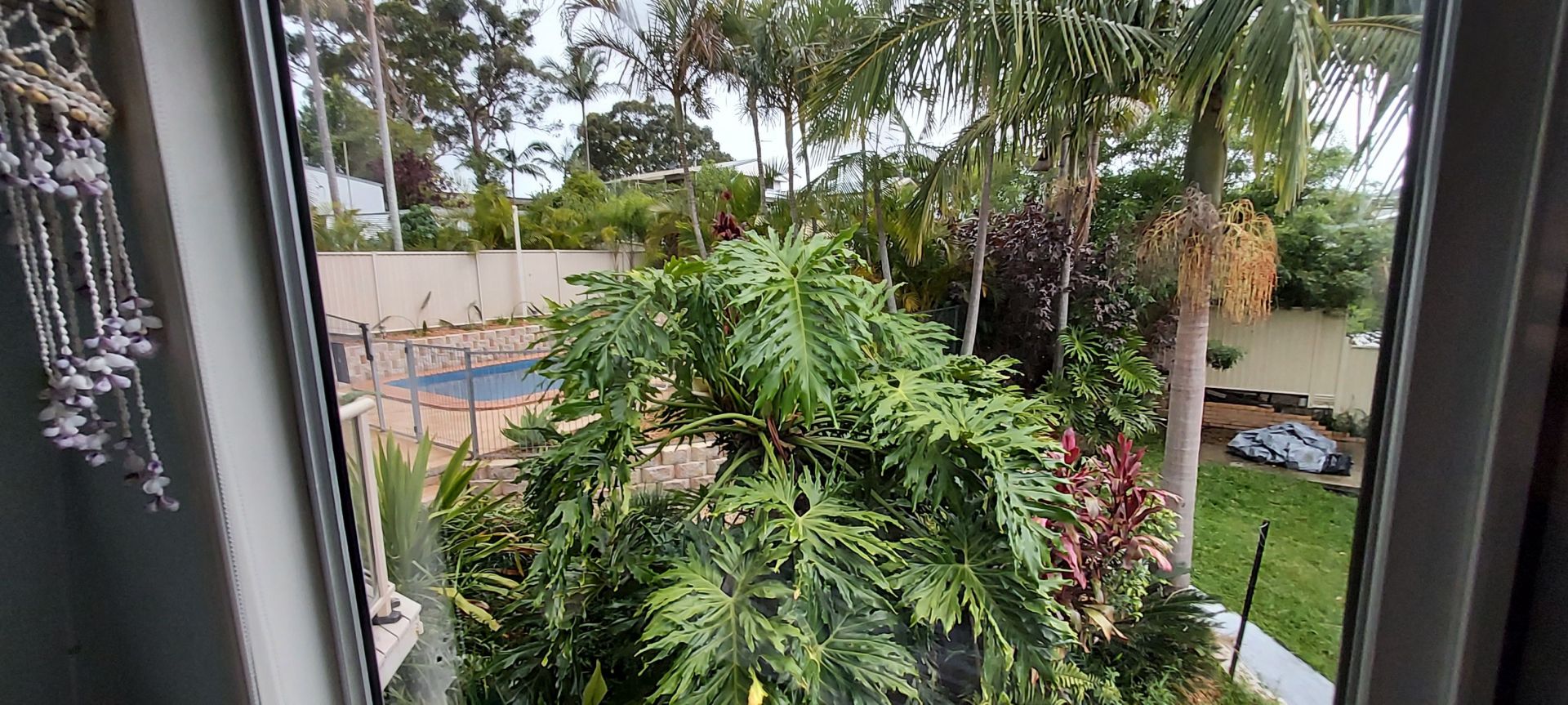 Situated in Sandy Beach just 1.2kms from local beaches on the booming Coffs Coast on a huge 1161m2 double block, this house consists of 5 generous sized bedrooms 4 upstairs and 1 downstairs all with built-in robes, the master has an ensuite with a walk in robe, 2.5 bathrooms, a spacious kitchen with breakfast bar, double lock up garage, large living areas with plenty of light from the many windows that surround the house overlooking the tropical oasis and great entertaining deck out the back.