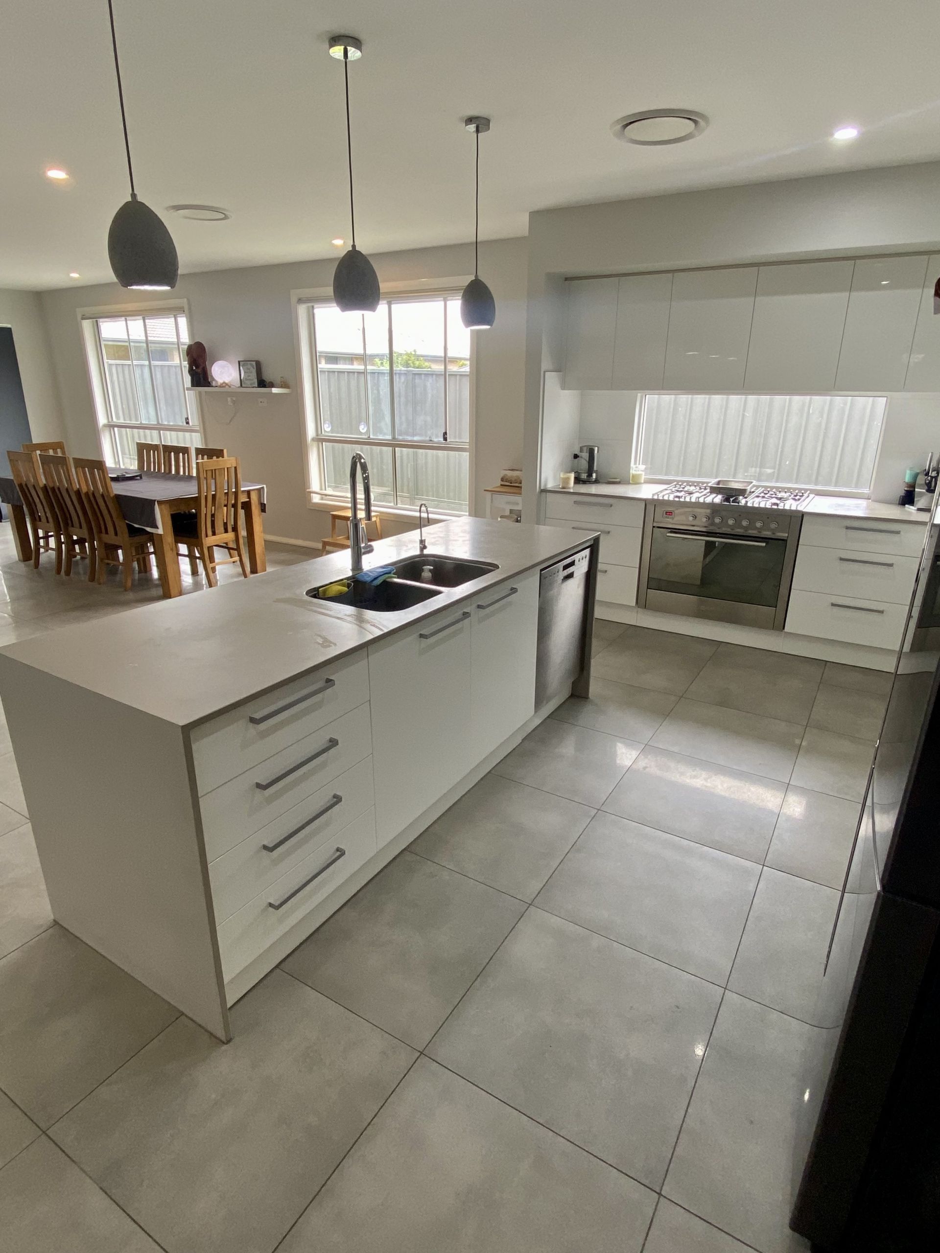 Boasting a large kitchen with walk in pantry, large fridge space with a water point, and stainless steel ILVE appliances transitioning to the offset buffet for extra bench spacing featuring top and bottom cupboards for that much needed extra storage connecting the dining and living area.
