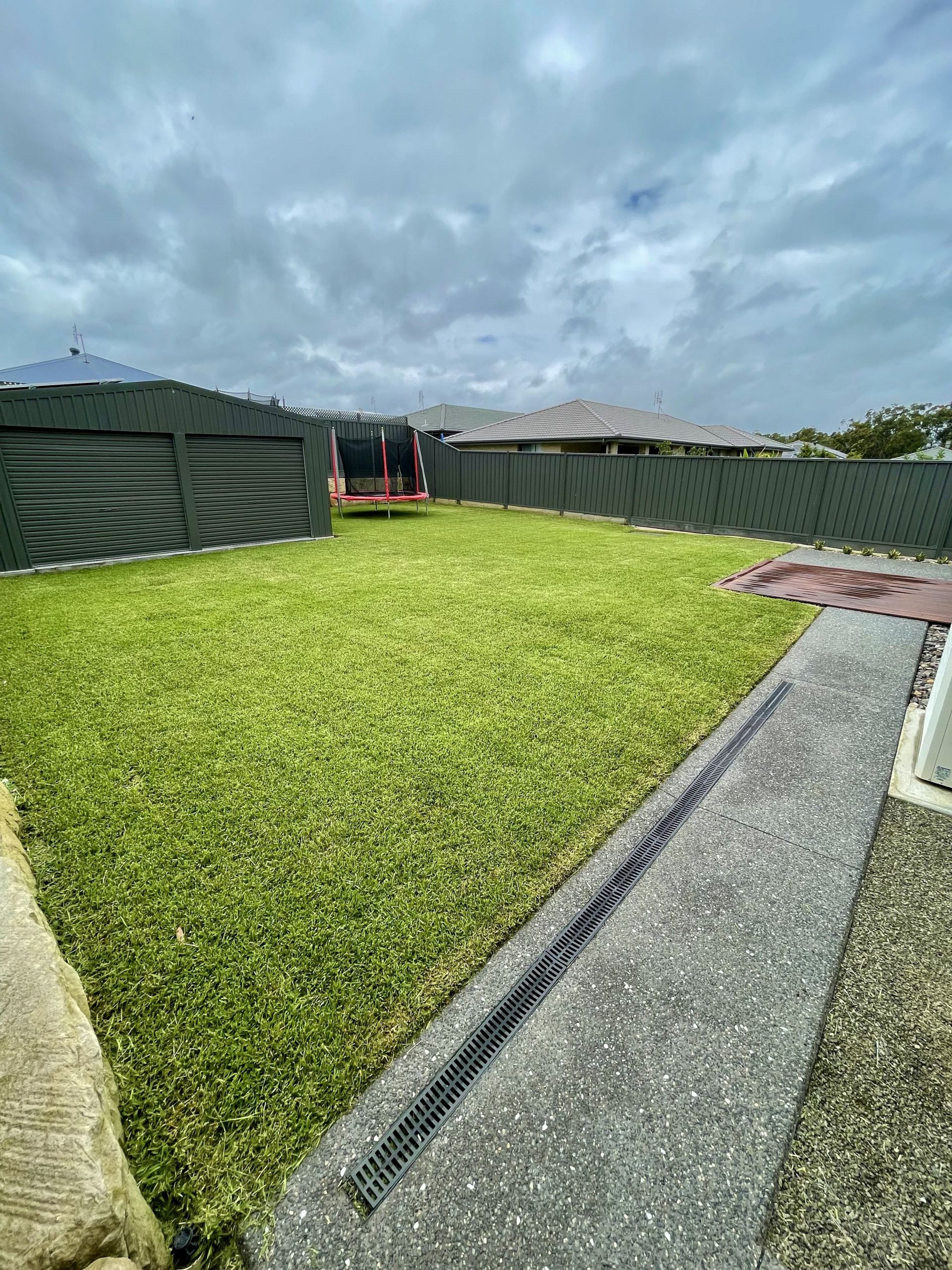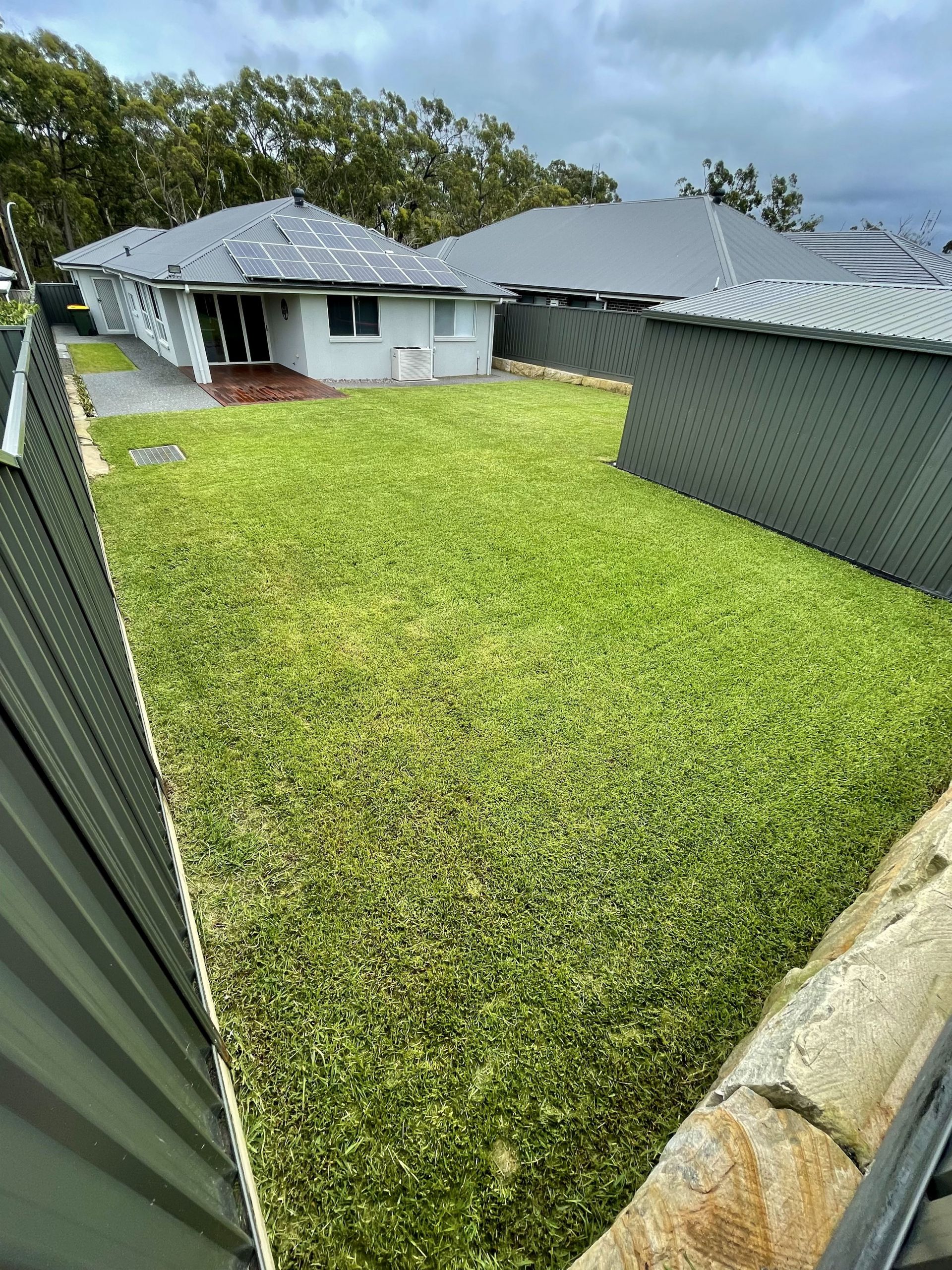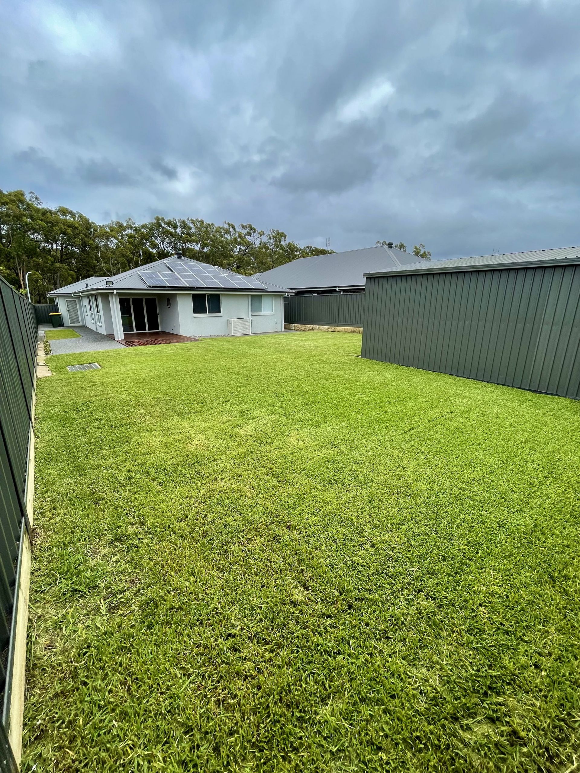 Lush green manicured lawns front and back with heaps of room for the family and pets to enjoy with an easy to maintain yet pleasant garden at the front.