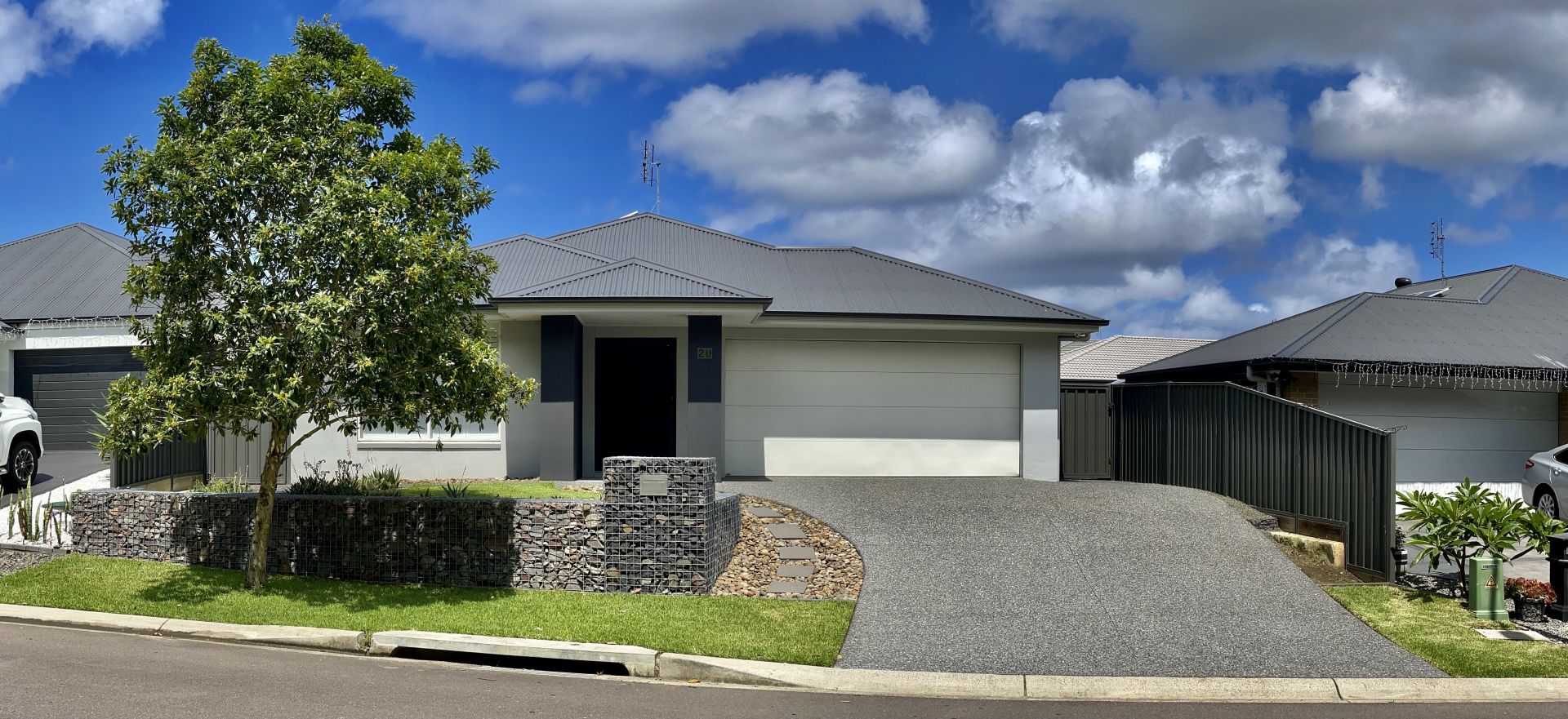 Greeted with a large double width from curb exposed aggregate driveway allowing up to 4 cars to park at once.