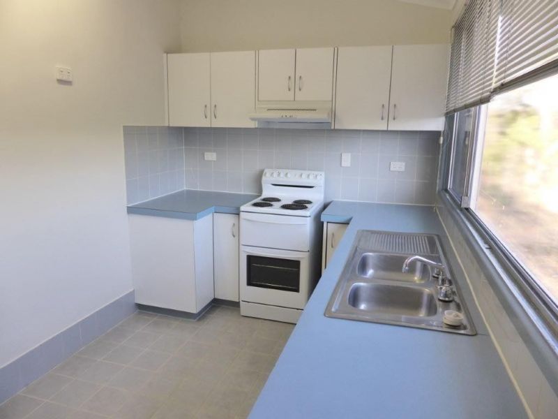 Kitchen has an electric stove, large space for fridge and views of the afternoon sunsets.