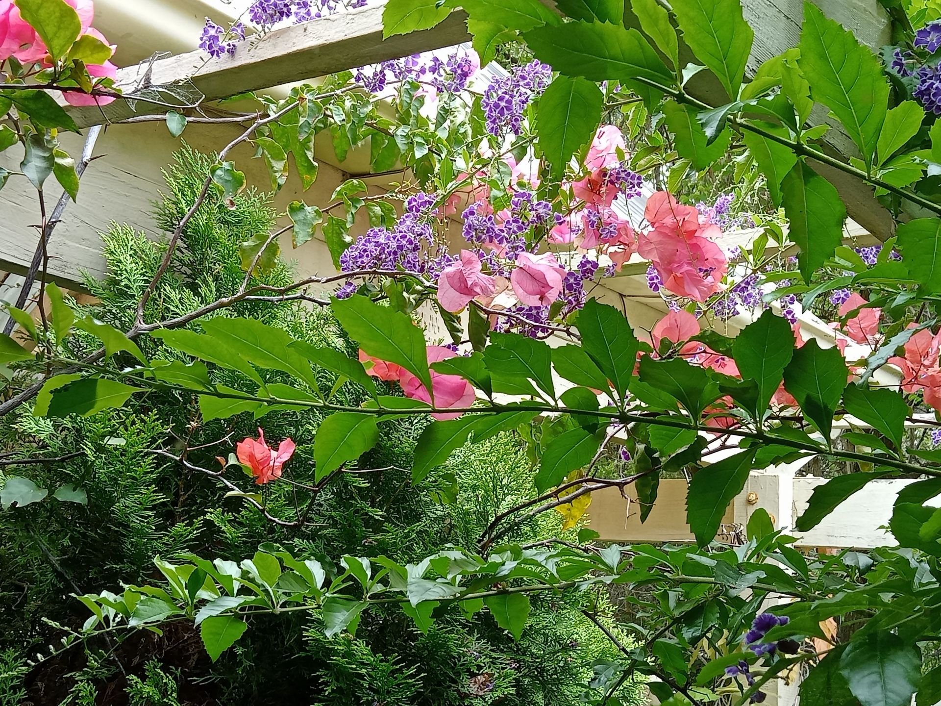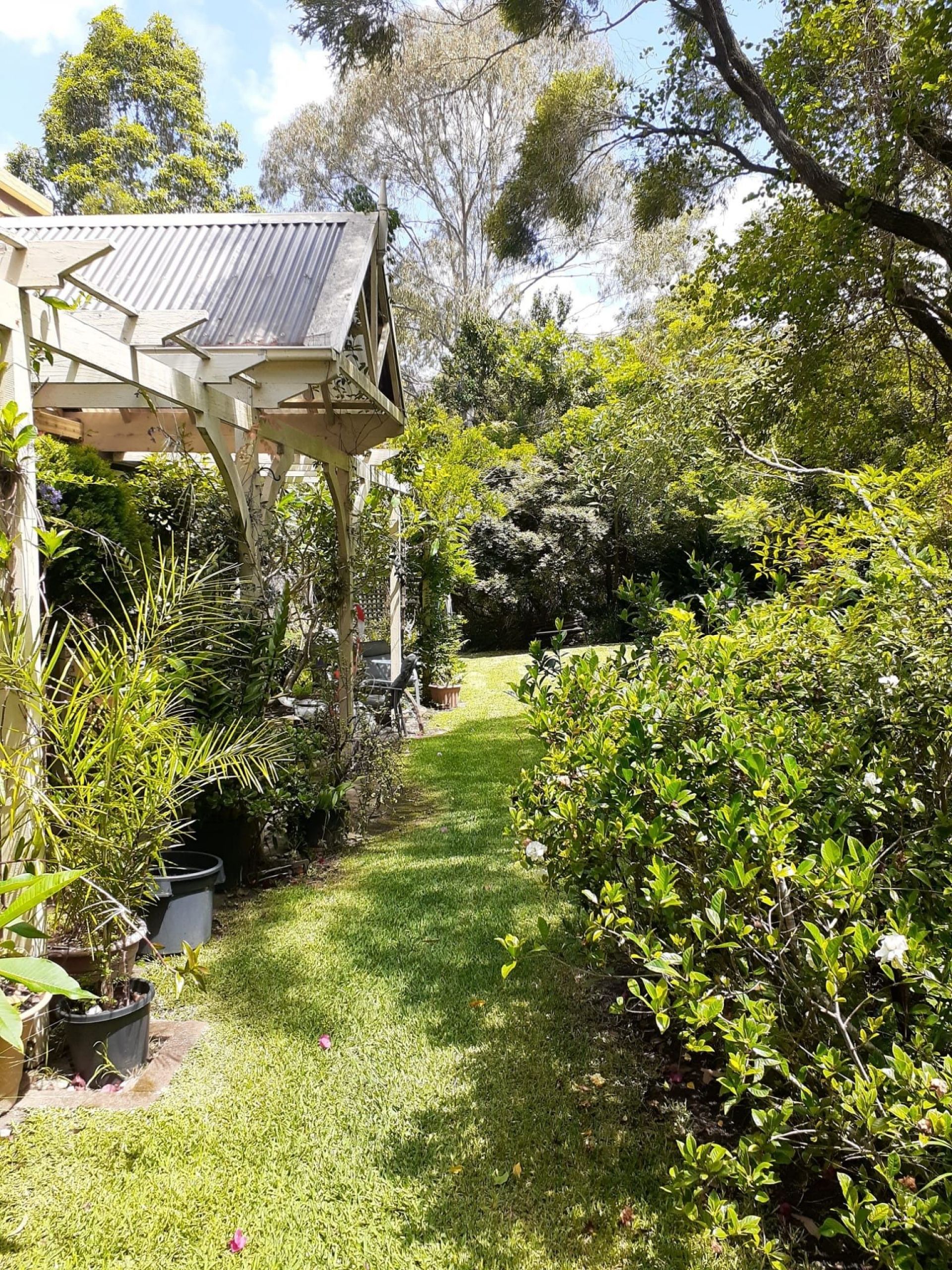 A unique home, built to last and a subtle reminder of a bygone era, surrounded by established native trees and ornamental ginger hedges for privacy and cooling. Colourful gardens with a mixture of Bougainvilleas, Christmas bush, bromeliads, native plants (bottlebrush, grevillea), hibiscus, frangipani, camellia, azaleas, wisteria, star jasmine and grape climbers...and a modest herb garden. And a small jacaranda coming on! Agapanthus line the front fence with radiant blue.