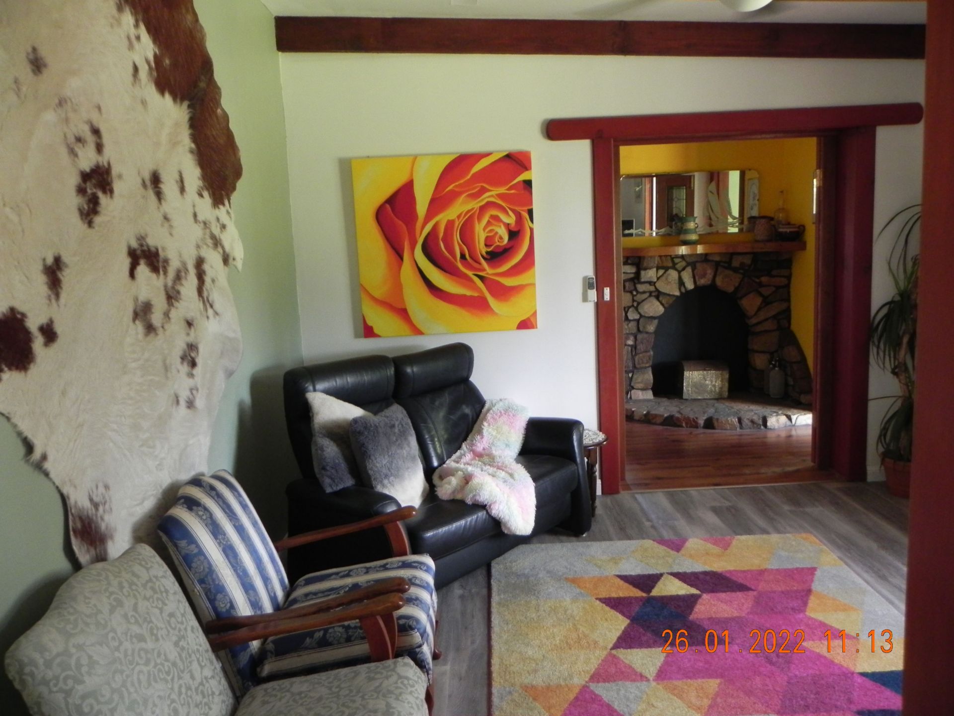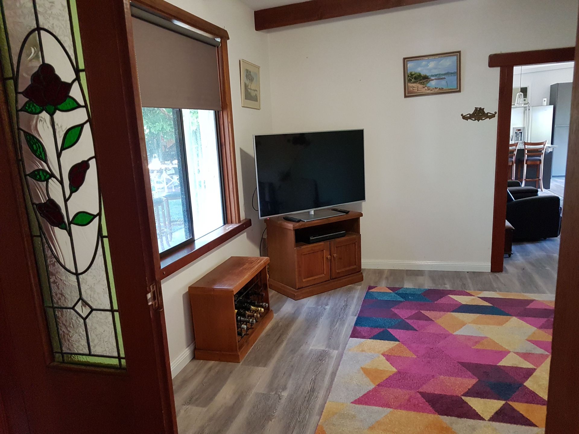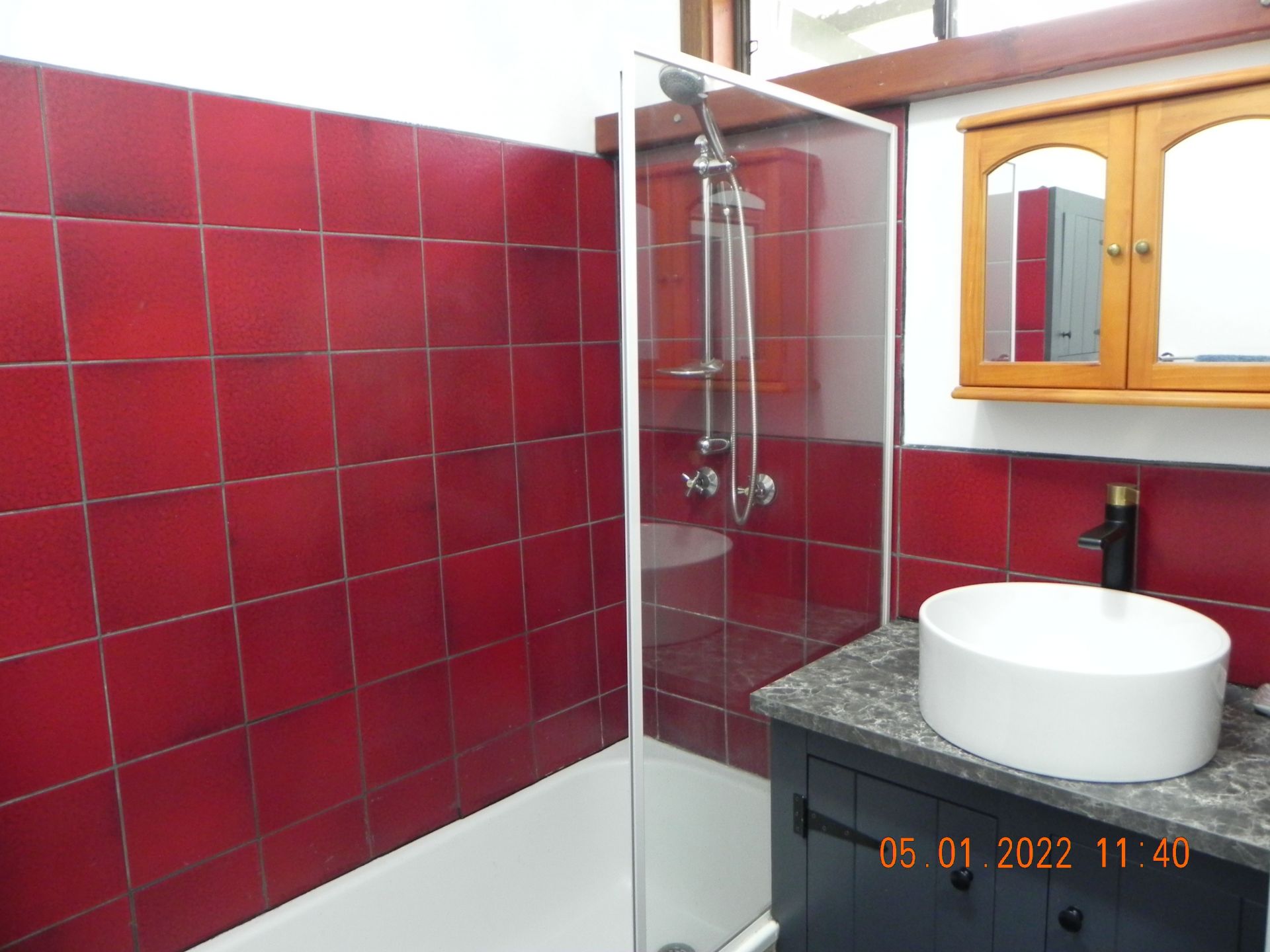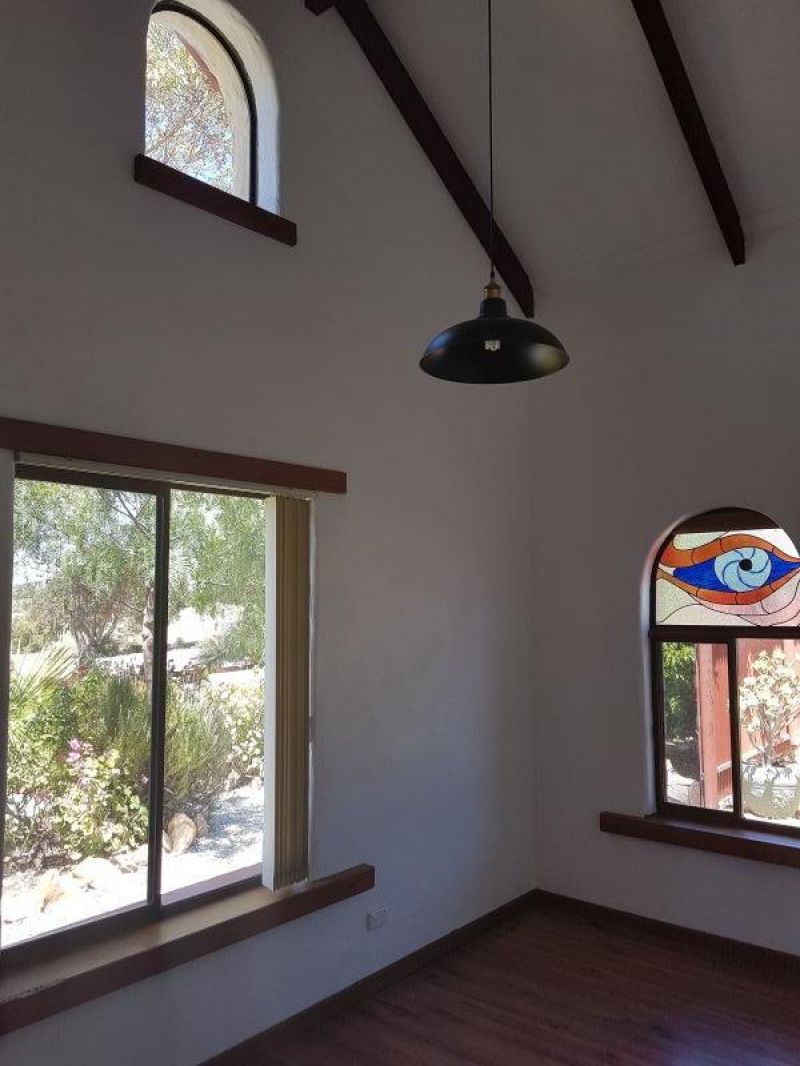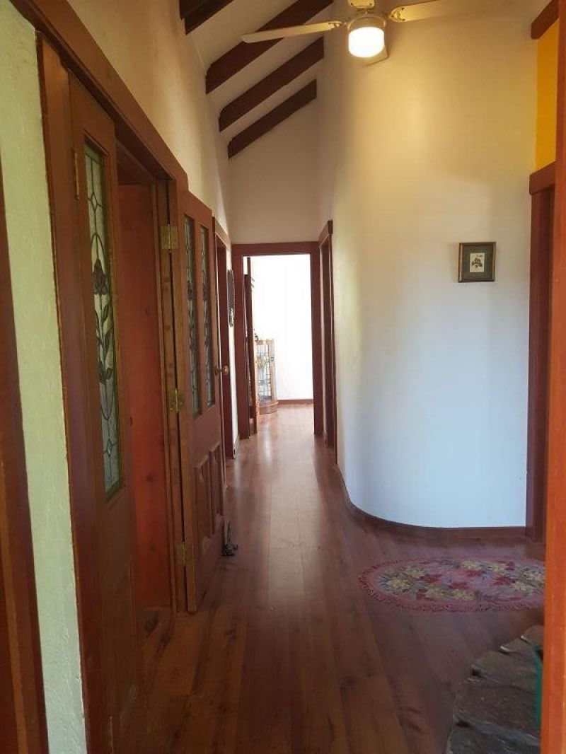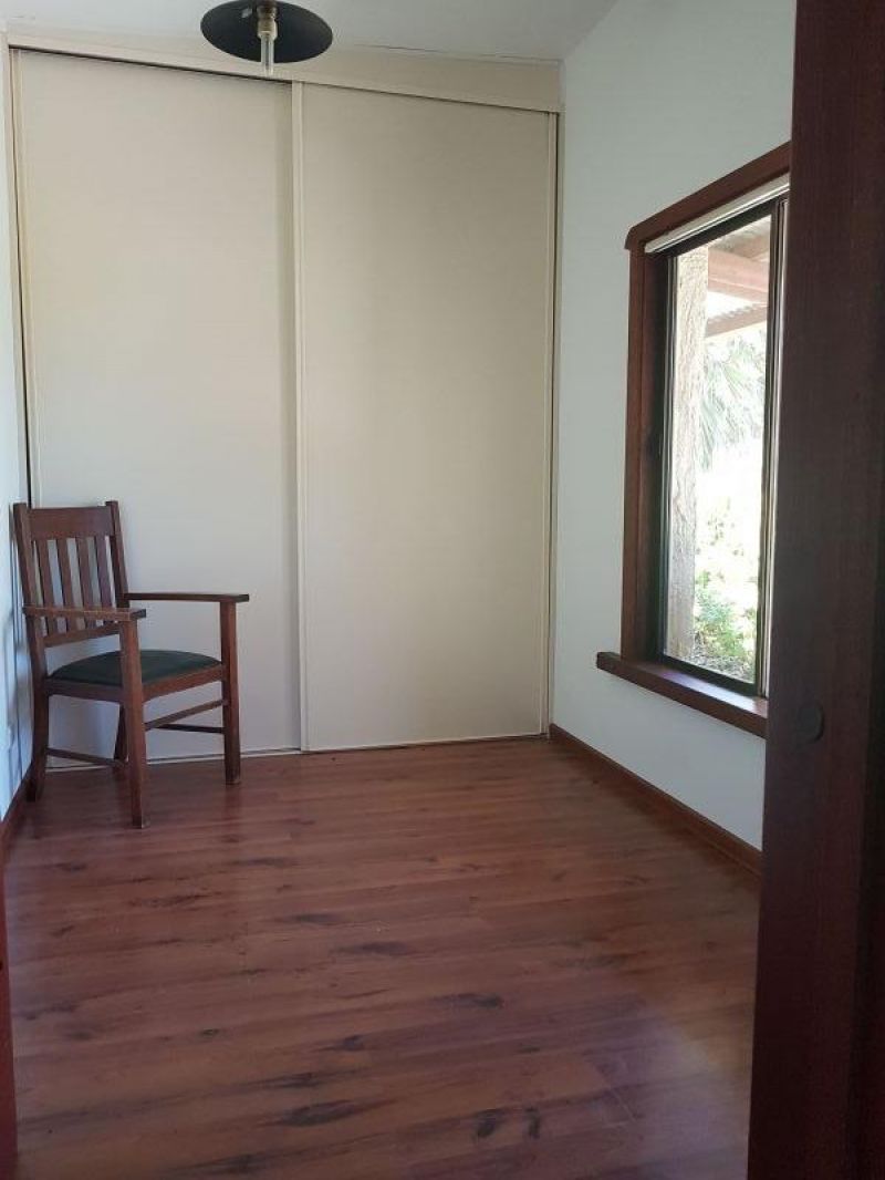 The property features unique bespoke timber doors, fittings, exposed beams and Cathedral ceilings to part of the home. Along with the spacious family living area, there is a separate lounge, separating the living from the 4 comfortable bedrooms. The main bathroom services the bedrooms, with the second accessible to the rest of the house. The large king size main bedroom offers built-in robes with a large sliding door to the outside veranda. A second bedroom also has built-in robes.