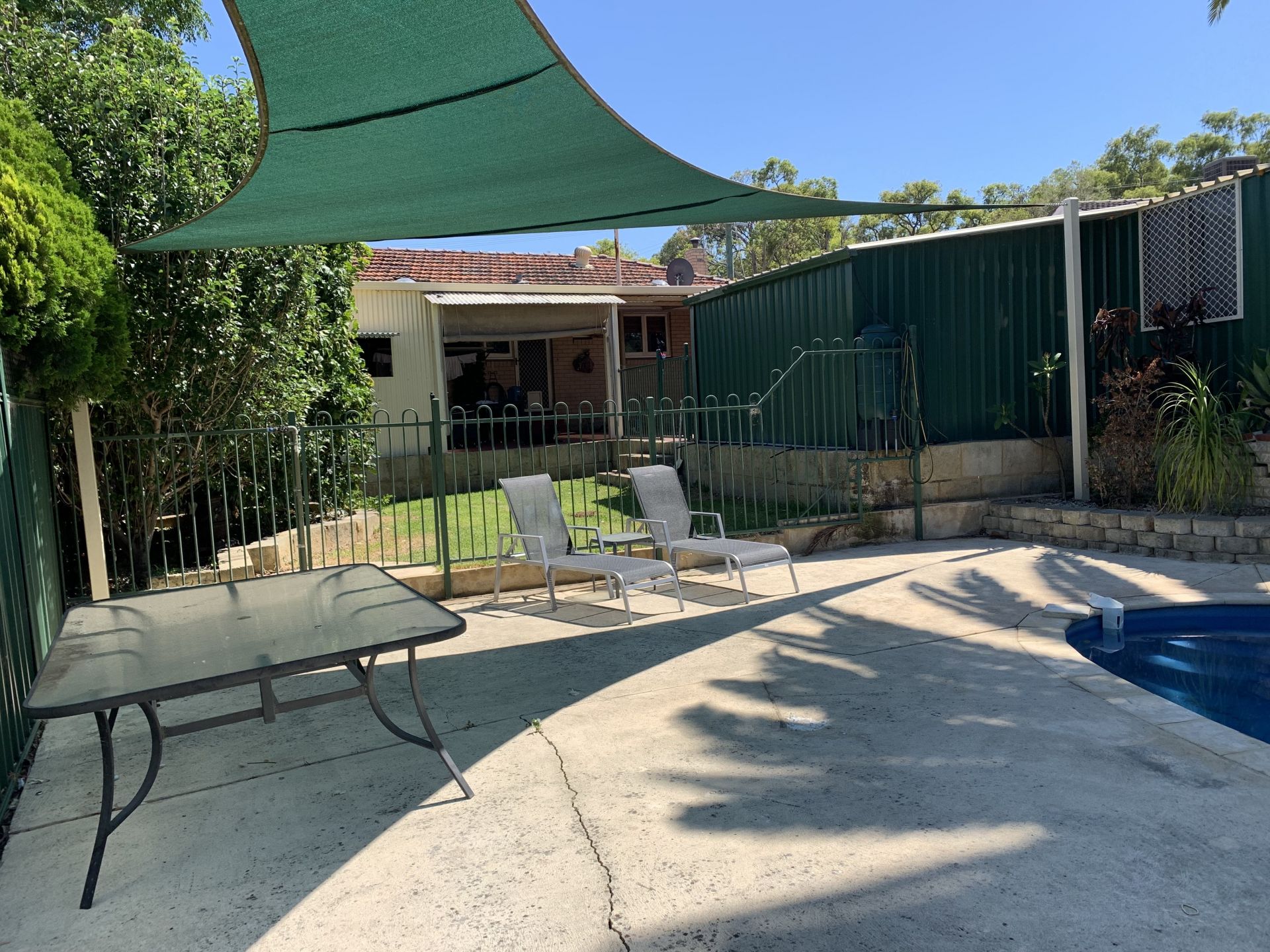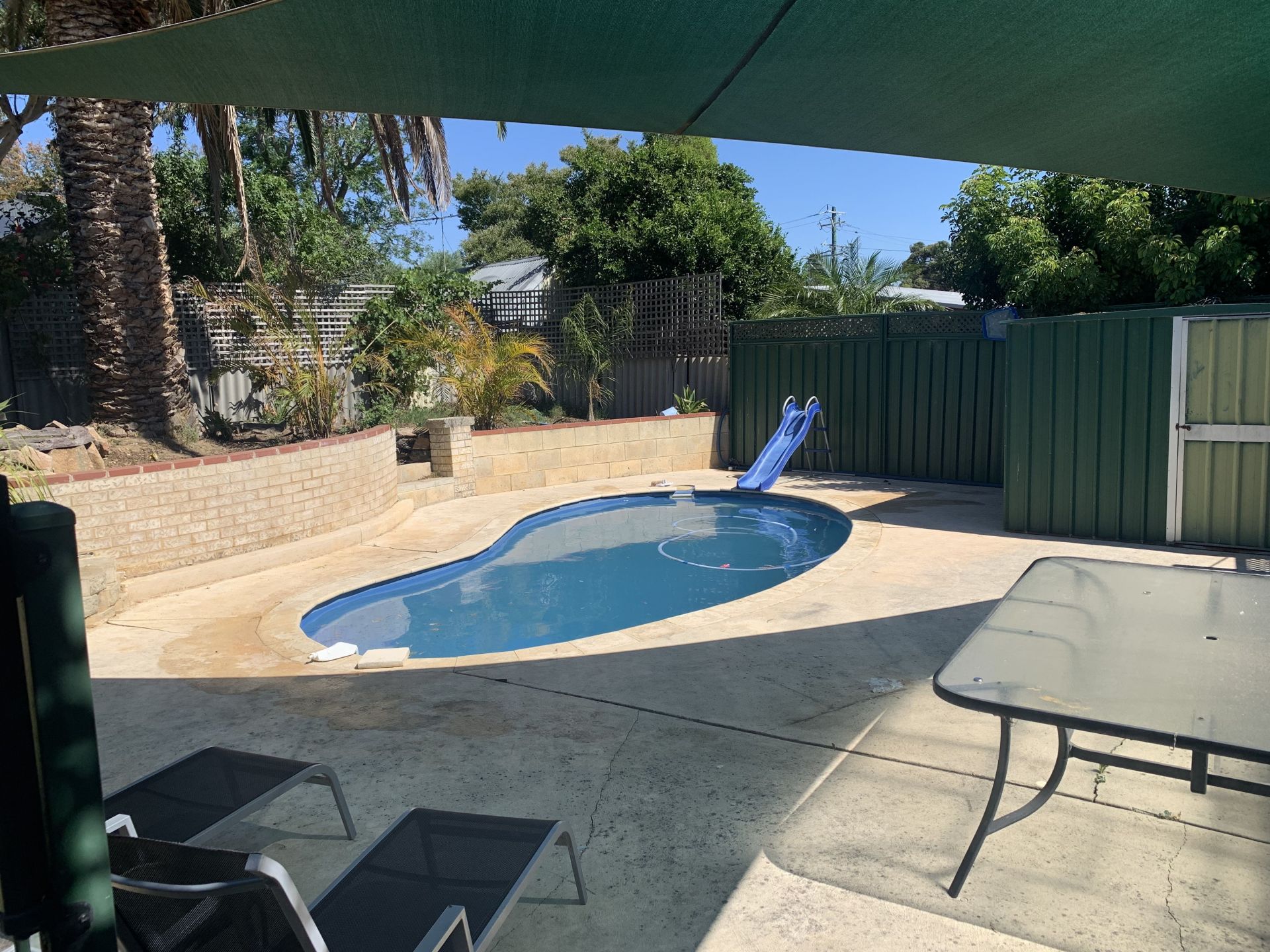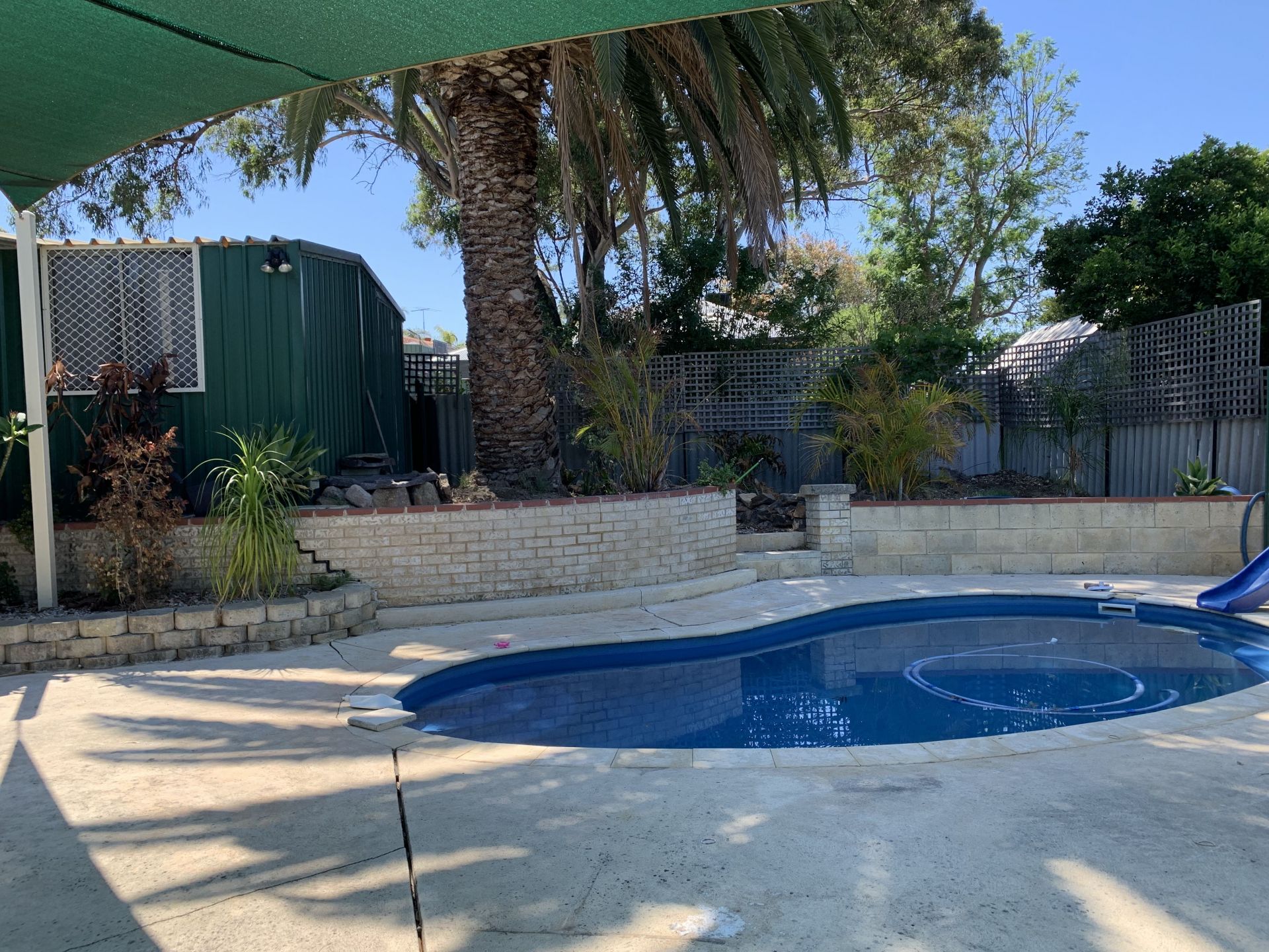 - Swimming pool surrounded shade sails
