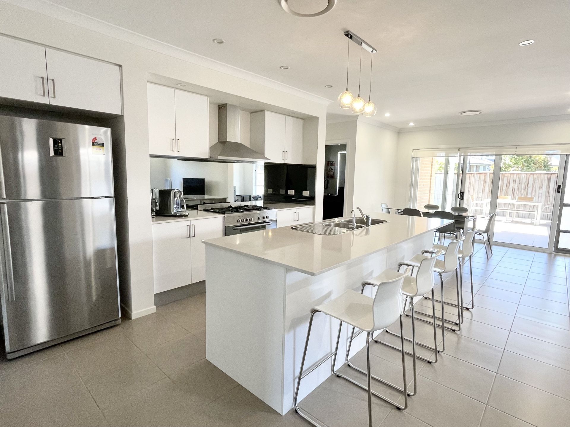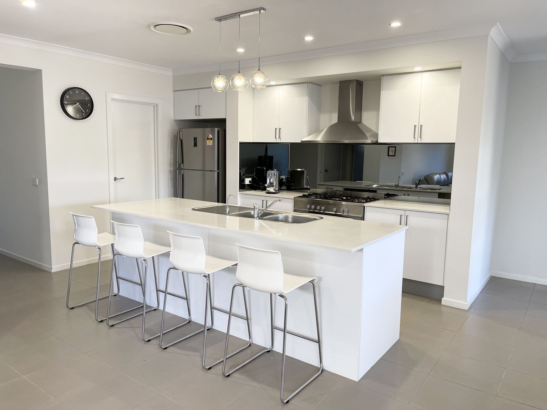 - Open kitchen with stone bench tops, sitting bar, walk-in pantry, 900mm gas oven and stainless steel appliances