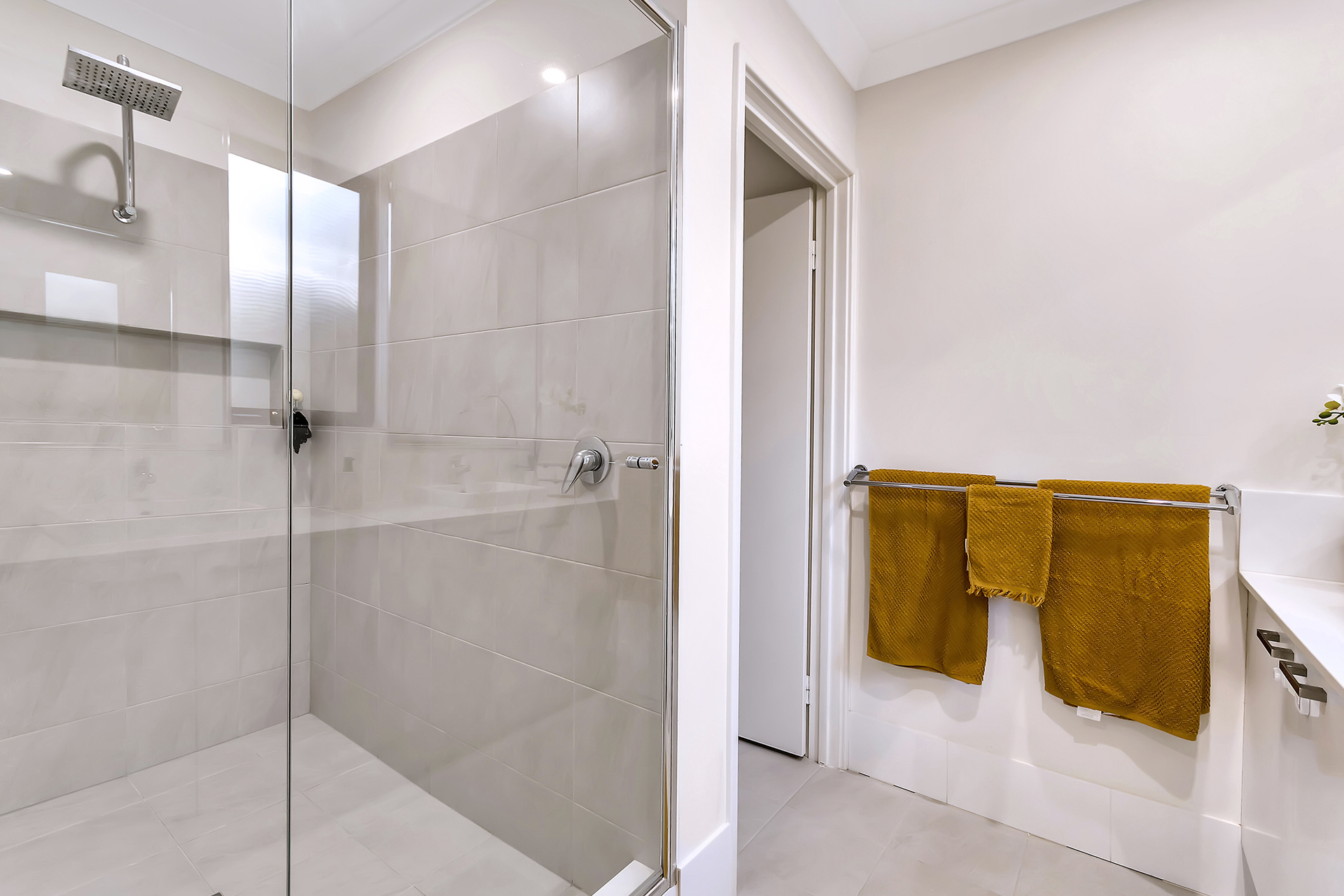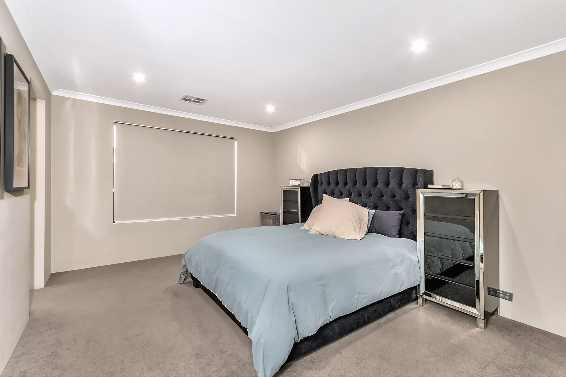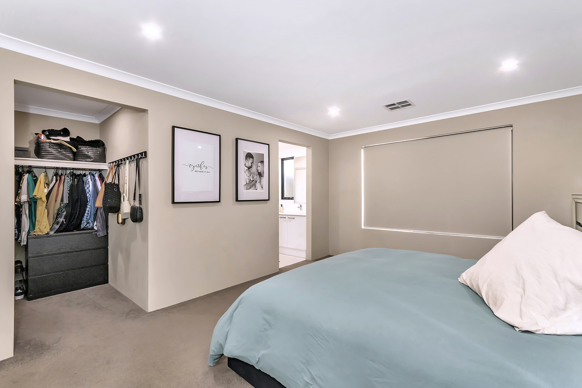 A king sized master bedroom with a spacious shower and great storage throughout the home.