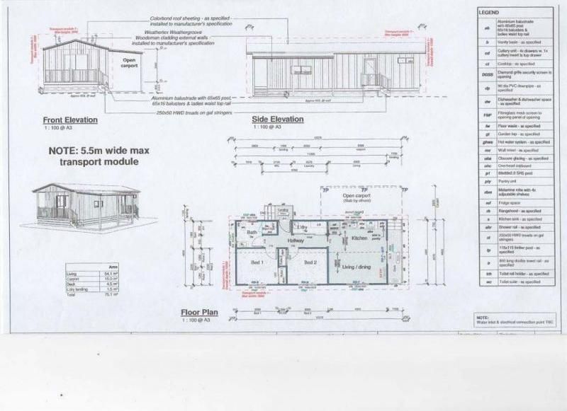 Raked ceilings, open planned living, Galley Styled Kitchen, 2 Generous Bedrooms, Carport, Colour Bond Roofing, Weathertex Cladding & Merbau decking.