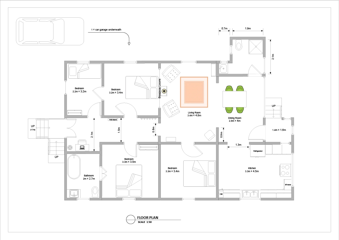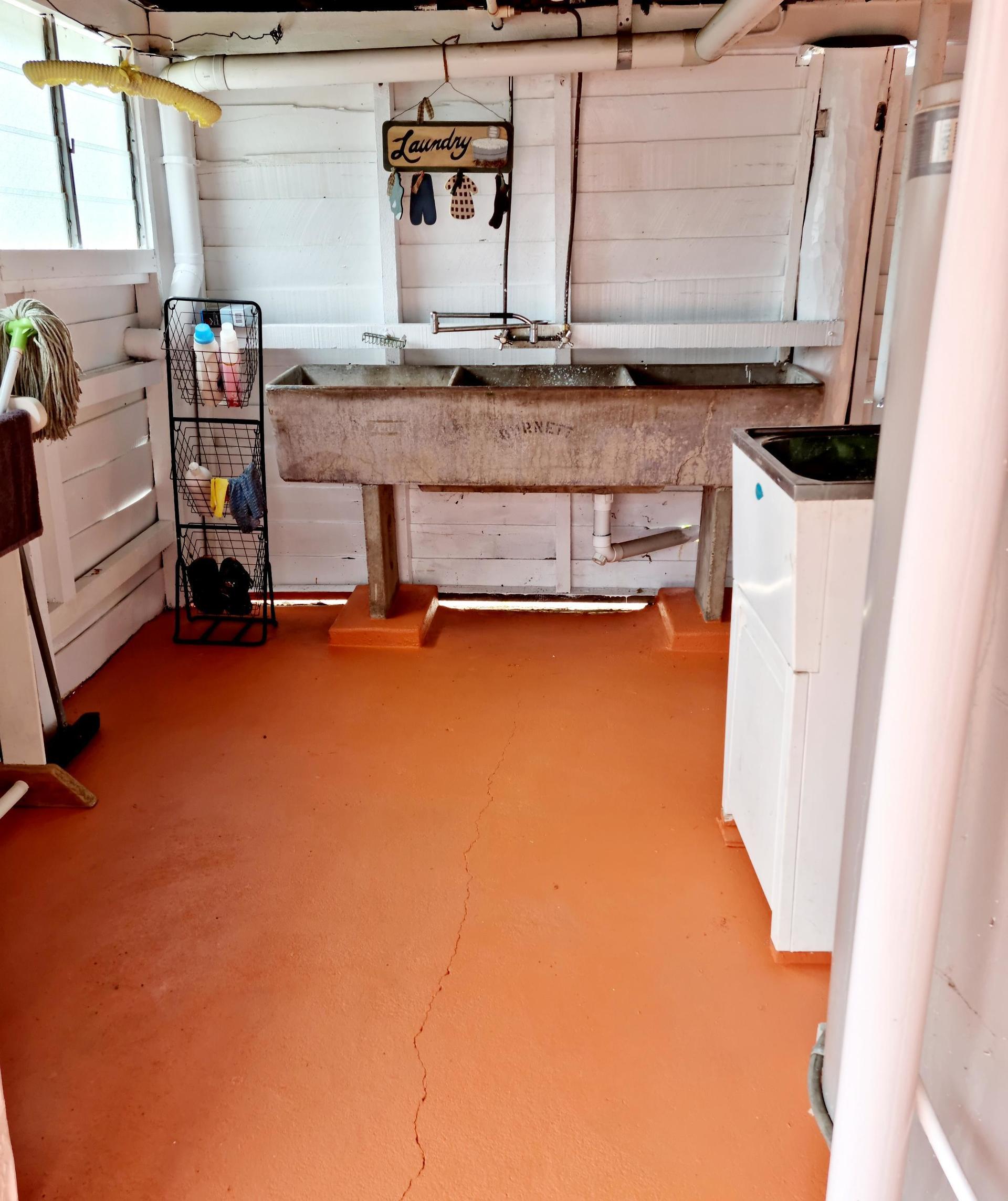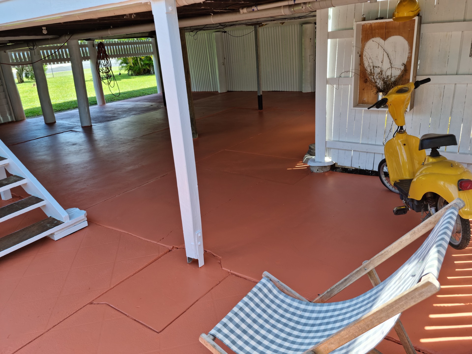 Secure lock up underneath the house with parking for one car, big entertainment area, laundry and toilet for your convenience.