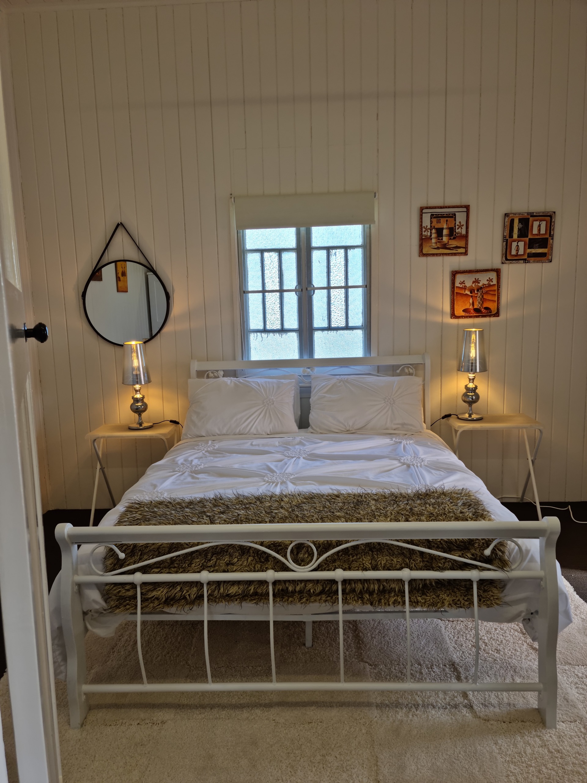 Master bedroom: Queen bedroom with ceiling fan and fly screen on windows. New carpet and freshly painted. The en-suite has a beautiful cast iron claw foot bath, sink with ample storage, and toilet.