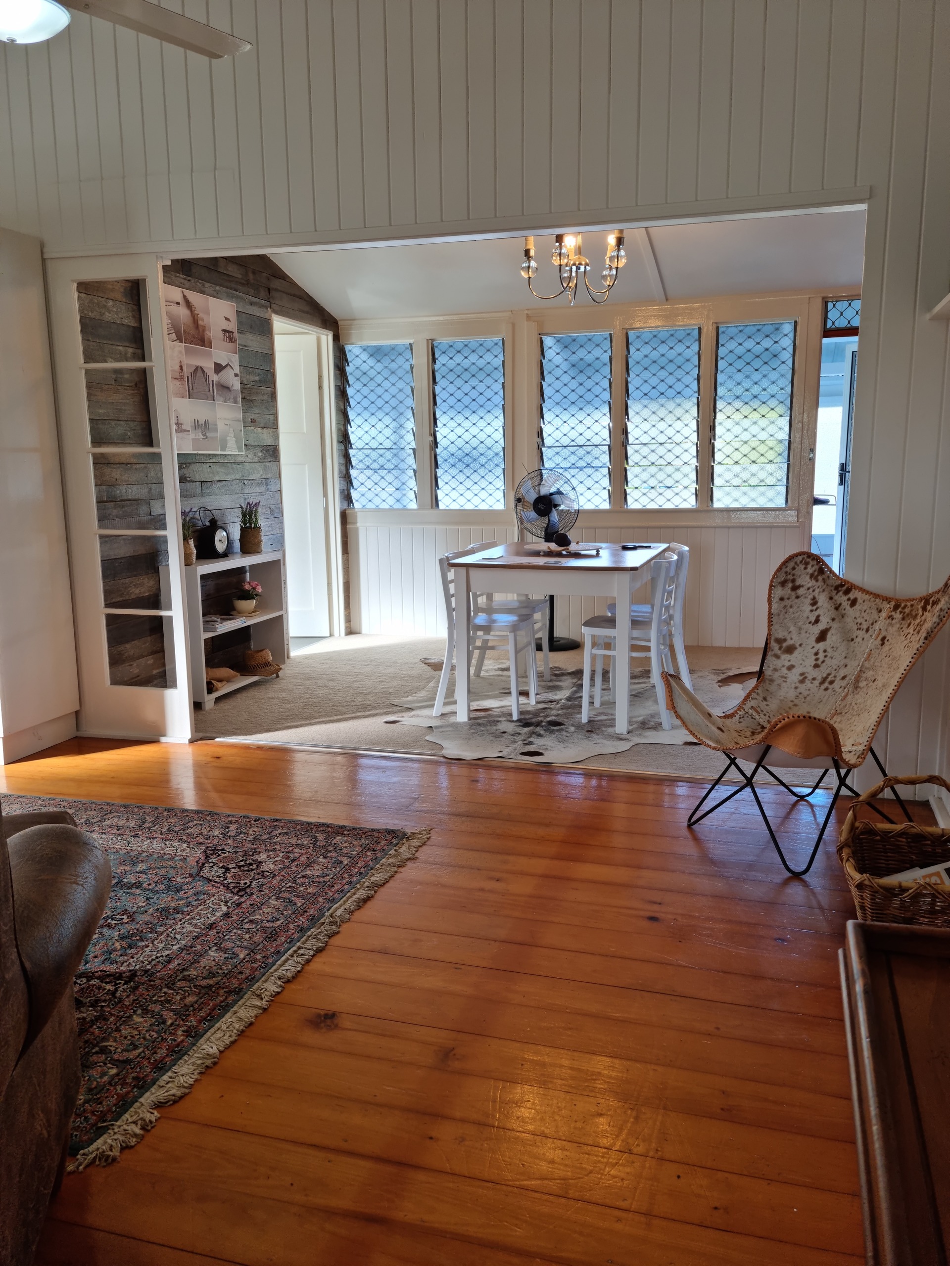 Lounge: Open plan lounge, exposed timber floors, fly screens and plenty of character.