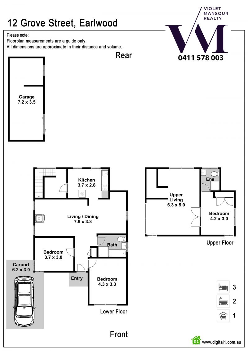 • 2 bathrooms + 3rd WC in Laundry