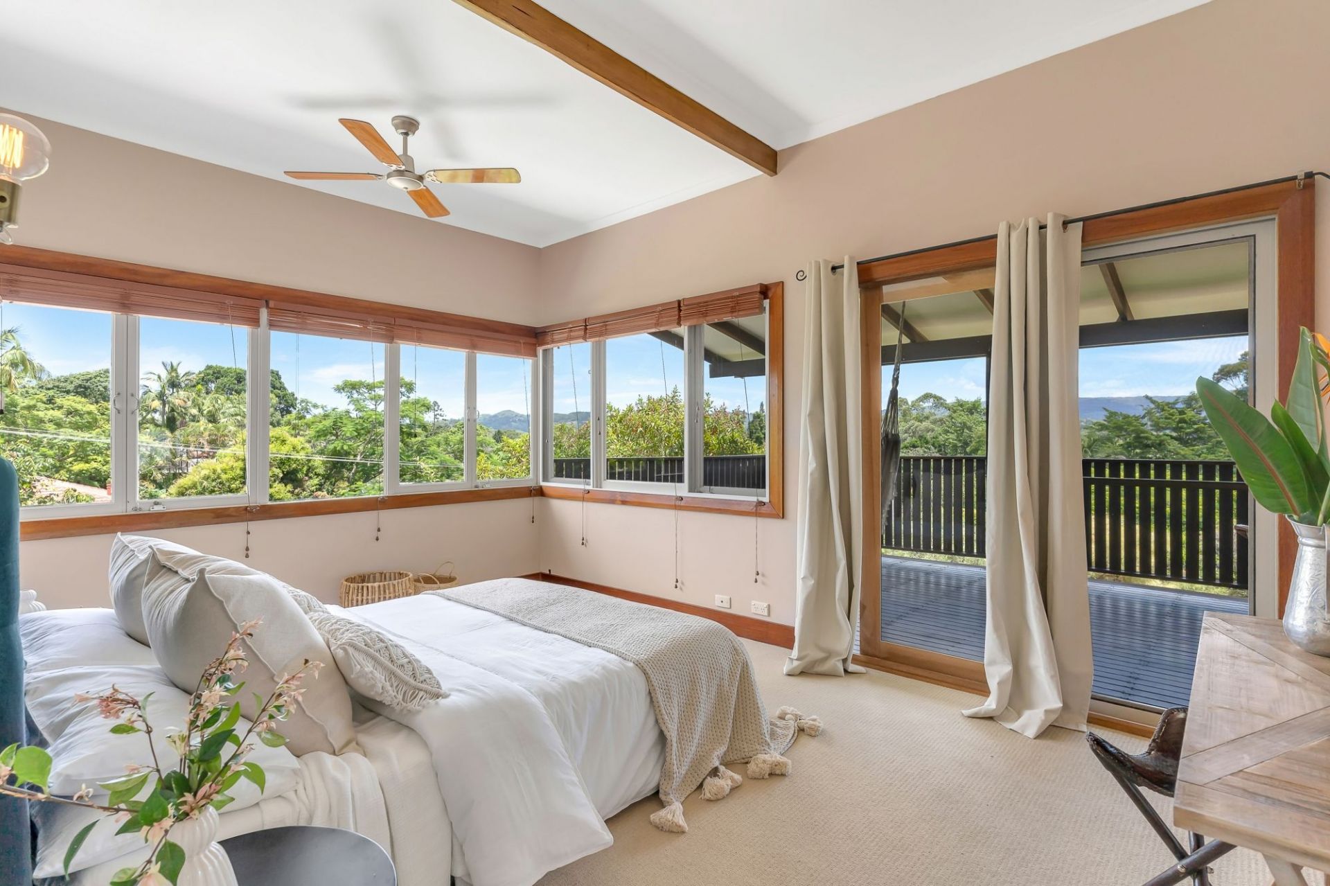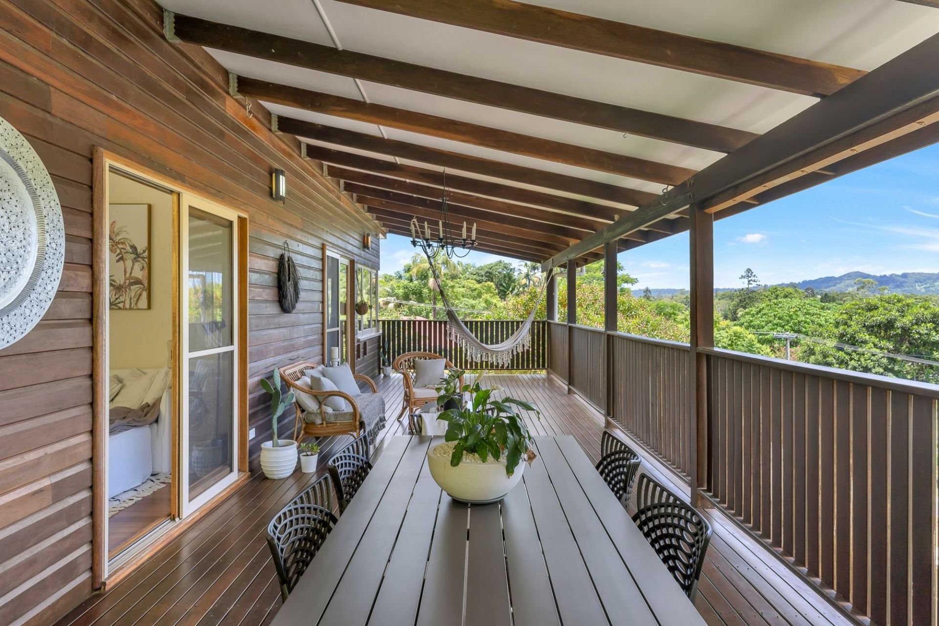 Offered for only the third time in over 100 years, is this delightful timber character home in Mullumbimby's very best cul-de-sac street with elevation, stunning views, tranquillity and still only a short stroll to the centre of town and local farmer's market. The house sits on a 405m2 block with remarkable 180' views over the mountains & Mullumbimby district. This fully renovated home is extended and modernised to exceptionally high standards using energy-efficient architectural design while honouring the character, style and period in which it was built (circa 1910), including polished hardwood timber floors, 12-foot ceilings, original doors, and custom-built timber windows. This beautiful home has 3 spacious bedrooms, open plan north-facing living/dining with cathedral ceilings, and a bespoke kitchen with Ceasar stone bench tops and gas cooking. The huge covered veranda opens on some of the best views available in Mullumbimby. Enjoy exceptional sunsets over the Koonyum Range and watch Boogarem Falls and up to 5 other waterfalls flow after rain. Colourbond roof, new 250L hot water service, new air conditioning, re-wired, re-stumped, roof insulation and new plumbing throughout. With solar power and fully landscaped. A "must inspect" for anyone looking for a premium character home in one of Mullumbimby's best addresses. Walk to the weekly farmer's markets at the showground and enjoy the welcoming atmosphere as you stock up on fresh local produce for your kitchen or stroll around town and enjoy the food, art and community. With sporting grounds and a number of public and private schools, this is an opportunity not to be missed. Byron Bay and Brunswick Heads and the beautiful coastline are just a short drive away. Just forty minutes to Gold Coast International Airport, come and enjoy the eclectic lifestyle of this vibrant community, with pristine beaches and National Parks only minutes away.