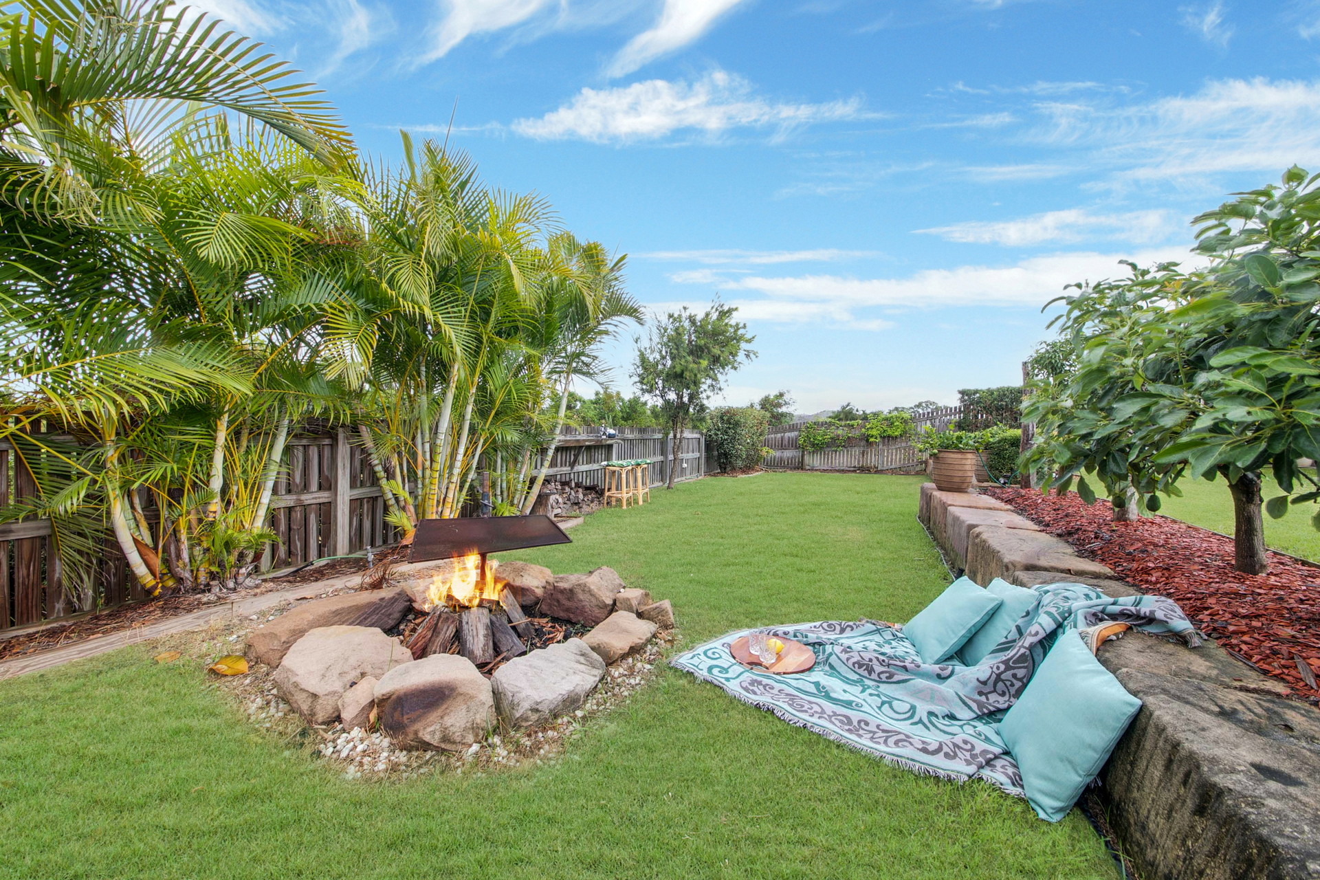 • Entertaining is top of mind in the split level garden. Sandstone rocks surround a built-in fire-pit for the cooler winter evenings, and room for a pool if desired.