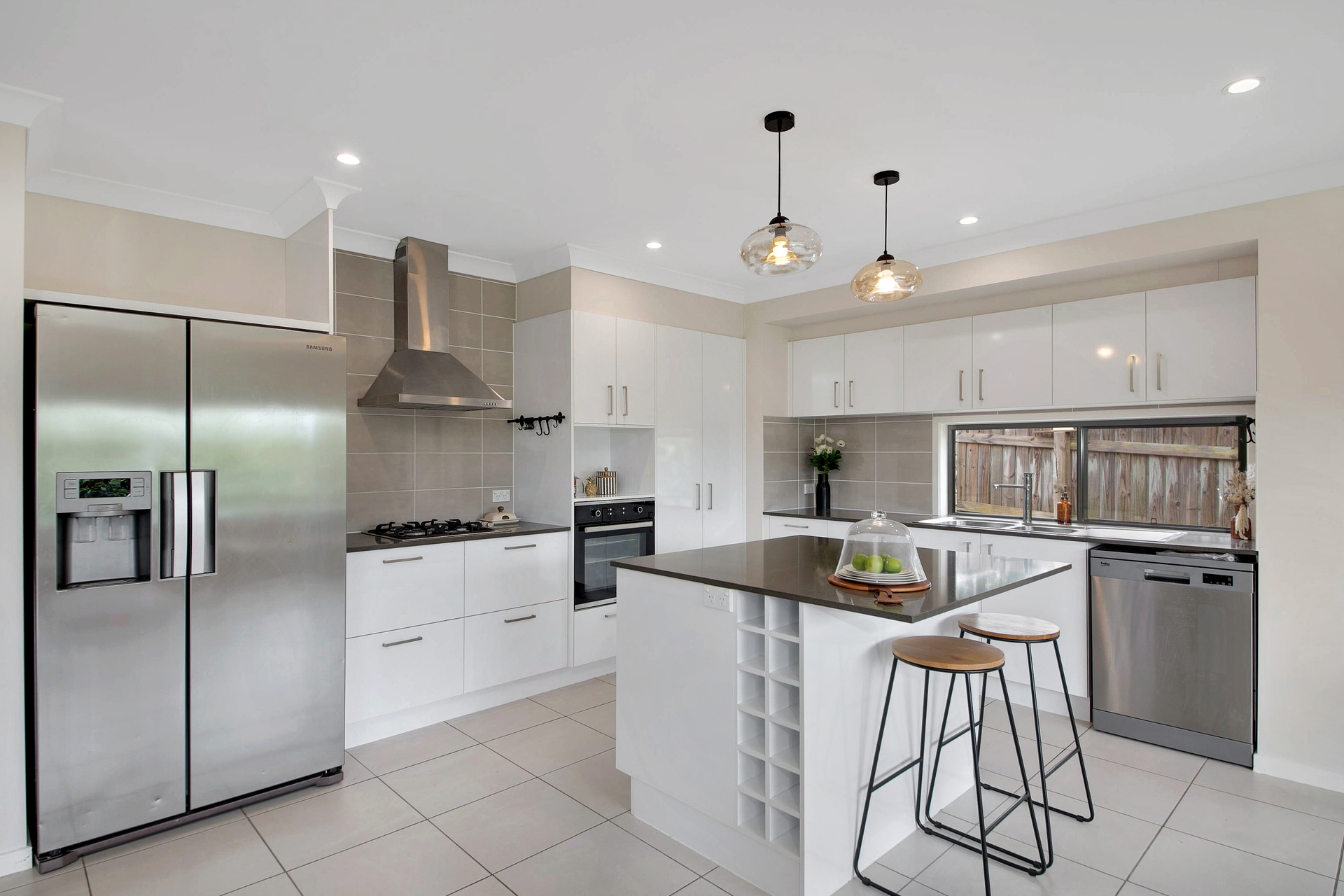 • Fantastic open plan kitchen and dining room, with gas cook top and electric oven. Caesar stone bench tops. The feature eye catching picture window, frames the outdoors, and fills the room with natural light.