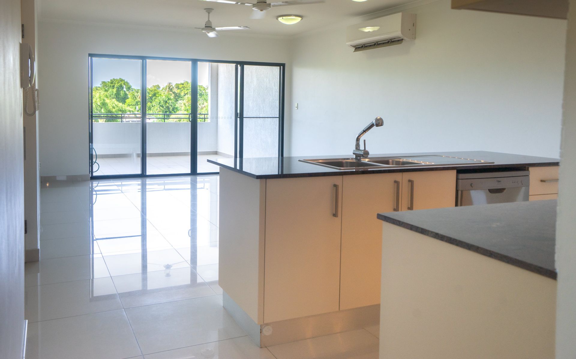 The unit feature two large bedrooms with a bathroom off the living area for guests and a larger ensuite for the main bedroom. There are split systems throughout and large opening doors onto the balcony that are angled to capture the wet season breezes perfectly. The balcony is generous in size and offers privacy, whilst also providing views of the famous Darwin sunsets and leafy surrounds.