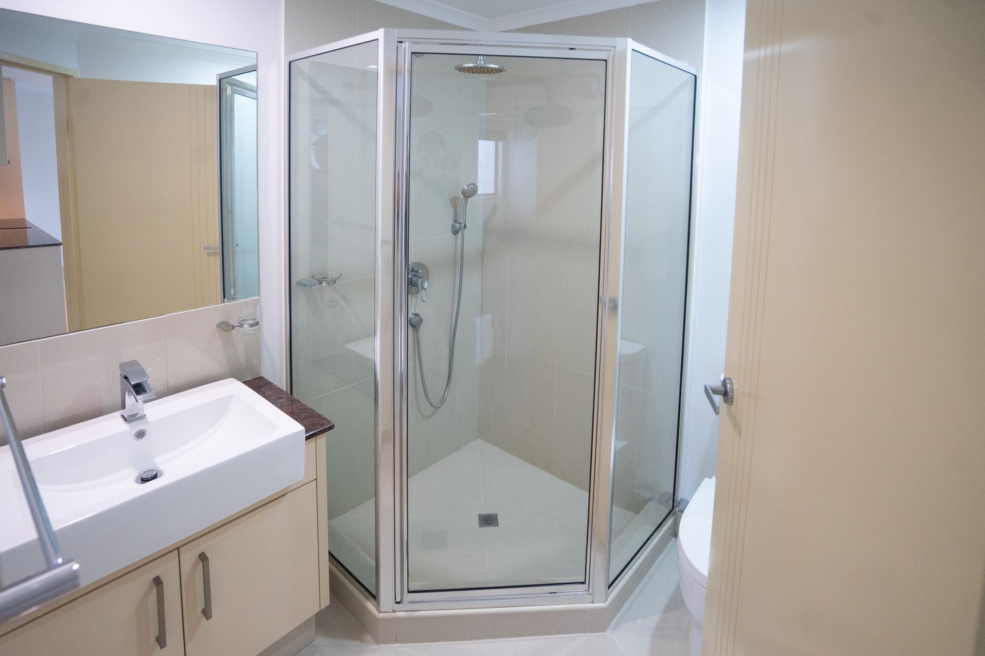 Featuring two large built-in mirrored wardrobes in each bedroom, with two large closets for storage also. A built-in laundry features a dryer and sink which is enclosed in a third closet. A stand alone lockable storeroom is also included on the same floor.