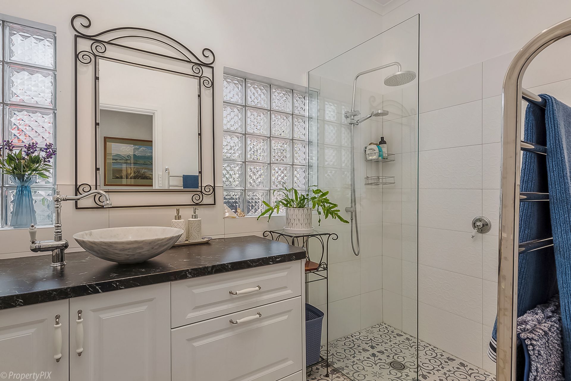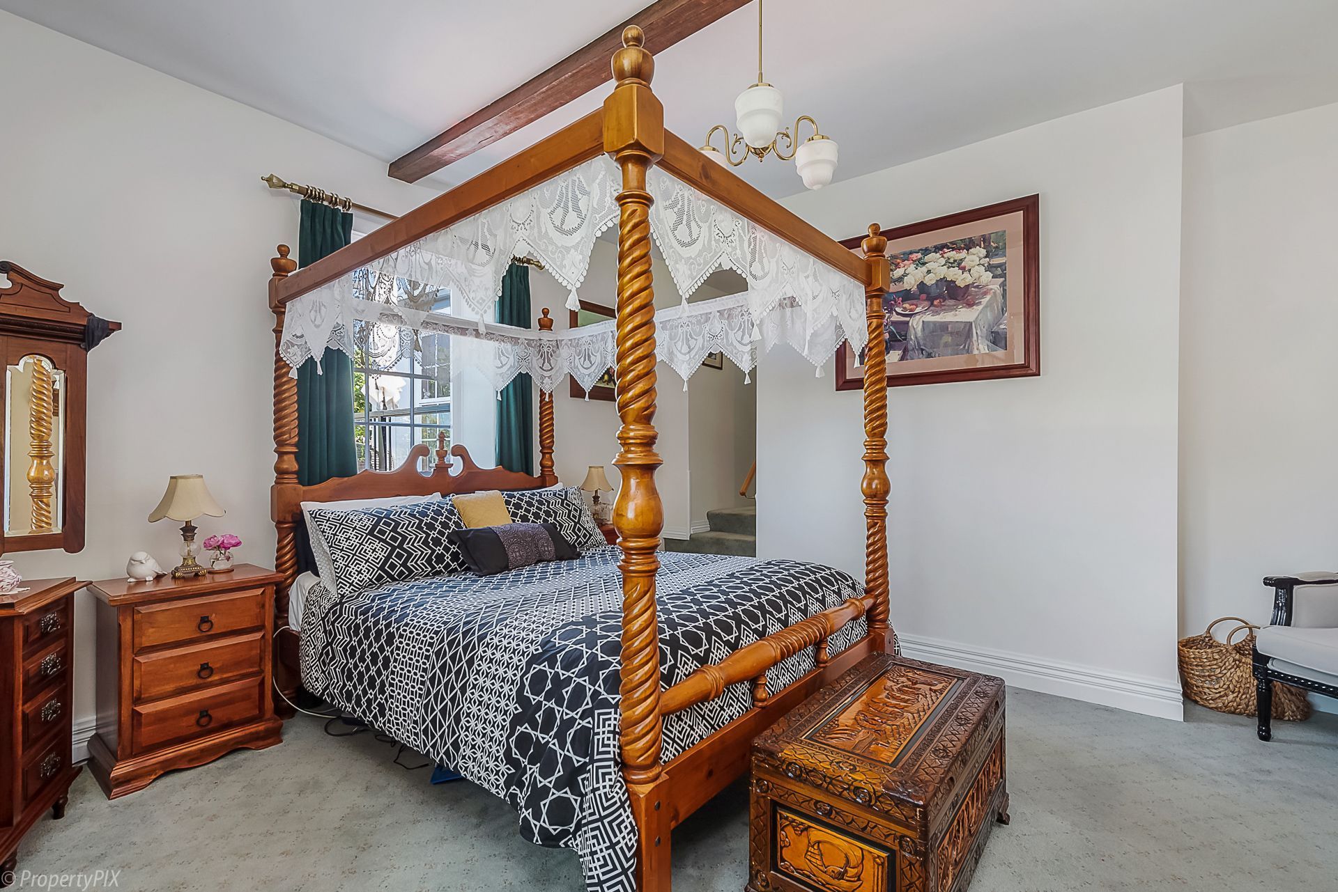 The door on the left in the entrance opens to the stunning and spacious master bedroom with its heritage furnishings and deep set windows. Steps at the side lead to the walk through robe and full ensuite with large 2 person spa bath.