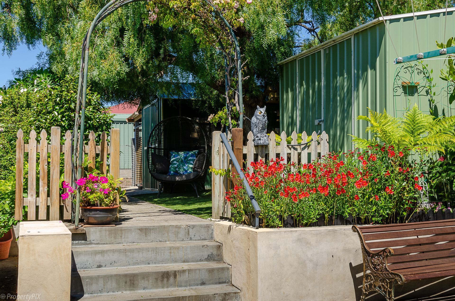 Many BBQ's have been enjoyed in the backyard around the gazebo. It is a lovely area. 2 raised garden beds and freshly planted herbs and salad plants. In the front side garden there is a very nice lemon tree that is usually loaded. The backyard is fully fences with double gates to the top area large enough for extra parking.