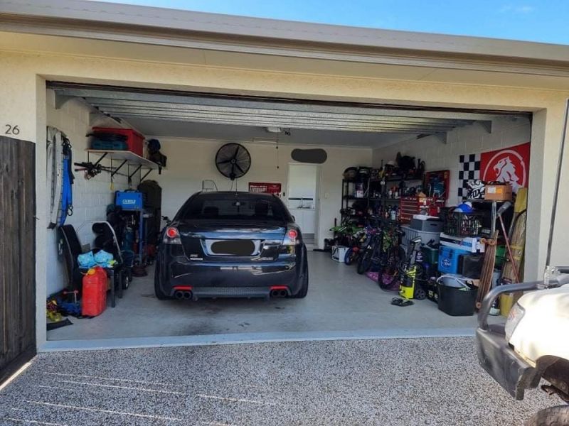The double garage with remote roller door is accessible from the laundry off the kitchen.