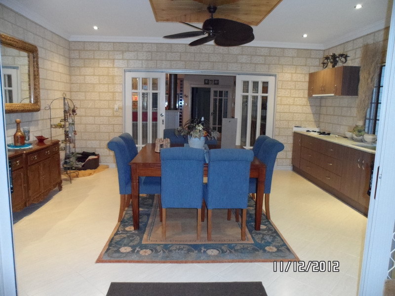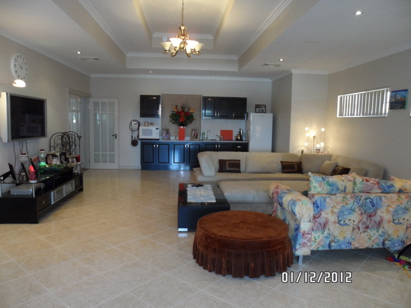 The office can be converted into another bedroom with walk in robe if required. The laundry has a full wall of storage cupboards and a laundry shut unit from the main bedroom upstairs. The home theatre has specialized lighting and 2300mm x 1350mm projector screen and surround sound speakers. The alfresco has its own kitchen and double sliding doors out onto the raised and tiled back patio. Lawns and gardens are all established and bore reticulated.