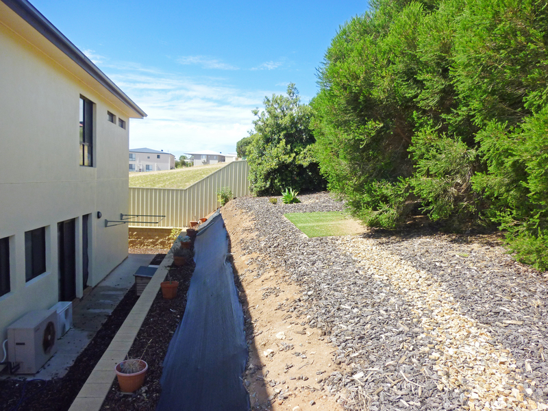- Low maintenance gardens, front yard watered by Septic water. Front lawn has pop-up sprinklers. Backyard all drought resistant plants.