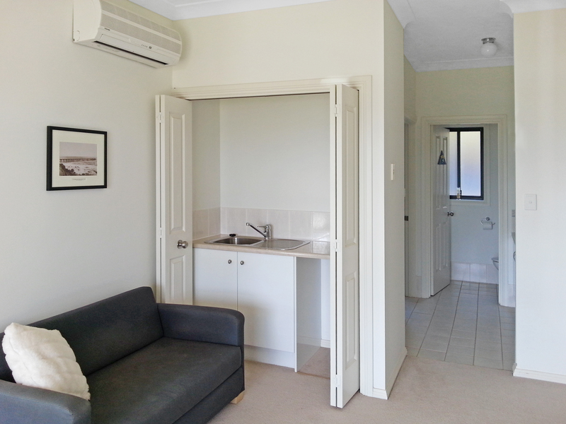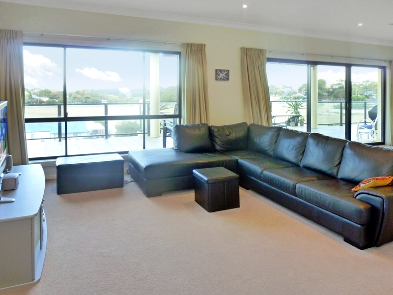 - Living Area looking out to front lawn and coastal views with Kitchette.