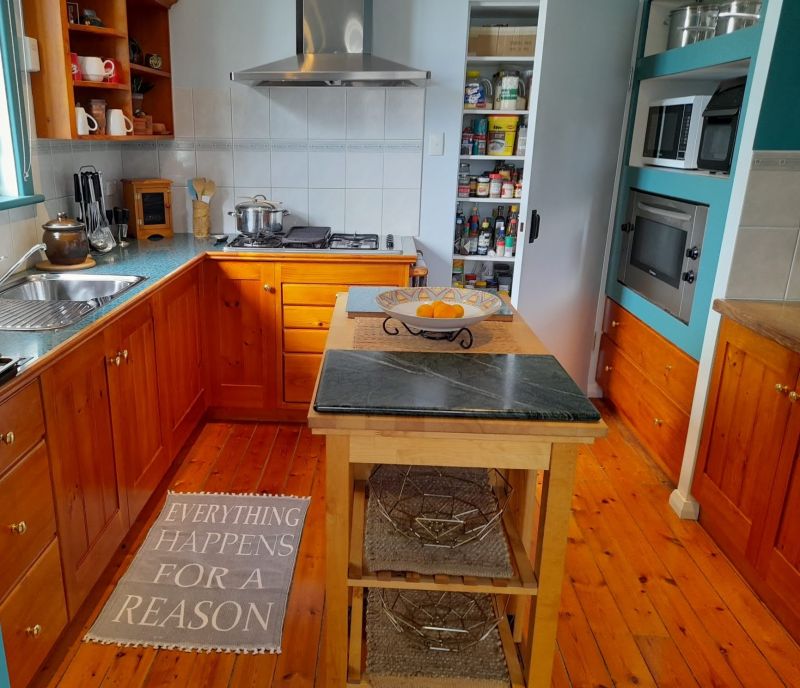 The modern farmhouse kitchen is a cook's delight with loads of bench and cupboard space including a full height pantry. A 900mm electric oven, a 5 burner gas cooktop, are supported by microwave and airfry oven. The dishwasher is conveniently located under the island bench. Full size fridge and upright freezer are conveniently located a step away in the modern laundry with a front loading washer/dryer. A nice feature is the solid timber breakfast bar, seating 4, separating the lounge and kitchen.
