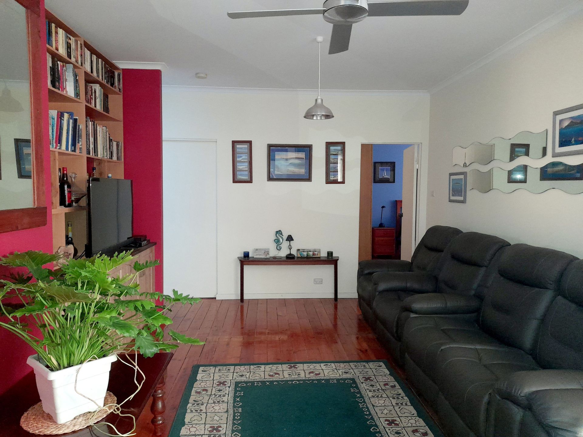 The lounge has high capacity RC aircon. (Supplied by Mannnix), 4 x full leather electric recliners, a new smart TV and a dining area for 6. It has a quality ceiling fan, as do the three bedrooms.