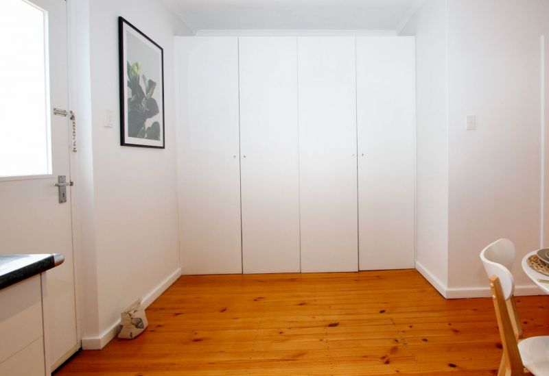 * Polished wooden floorboards throughout kitchen/living/dining and bedroom