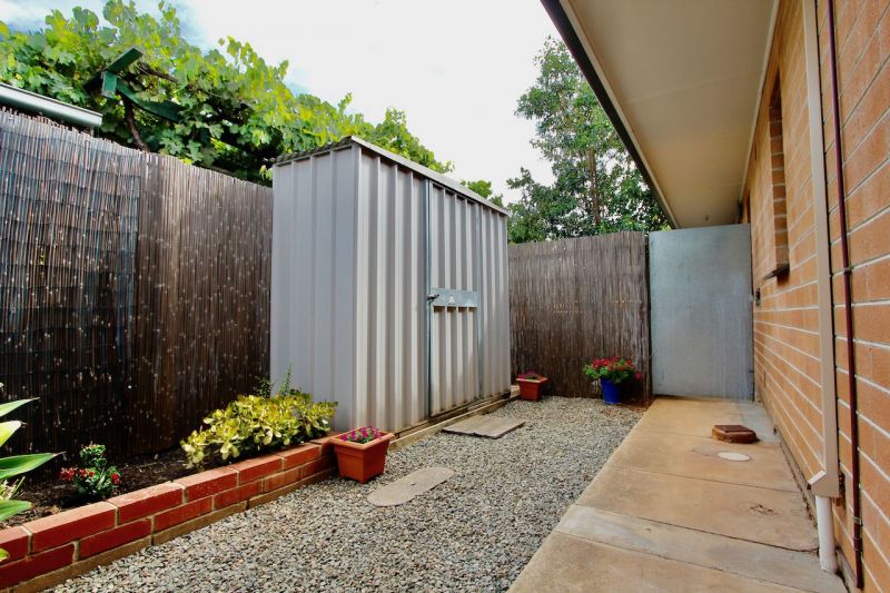 Entertain friends in the rear courtyard, which also houses a handy garden shed.