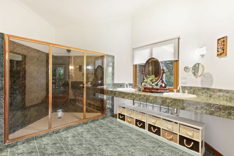 This excellent opportunity also features 2 air conditioners, ducted heating, Coonara wood heater, gas-log fireplace, soaring ceilings creating spectacular vertical dimension, 42 solar panels for significant energy bill reduction, bore water, filtered tank water, and glimpses of the lake.