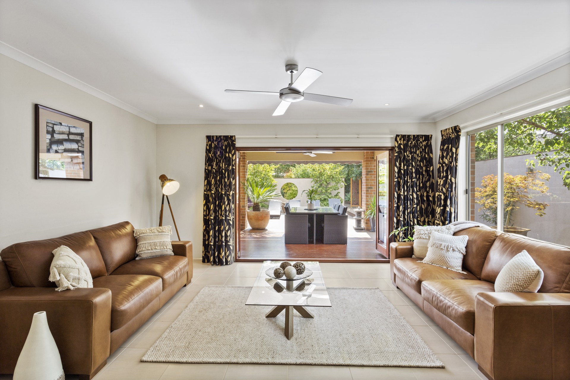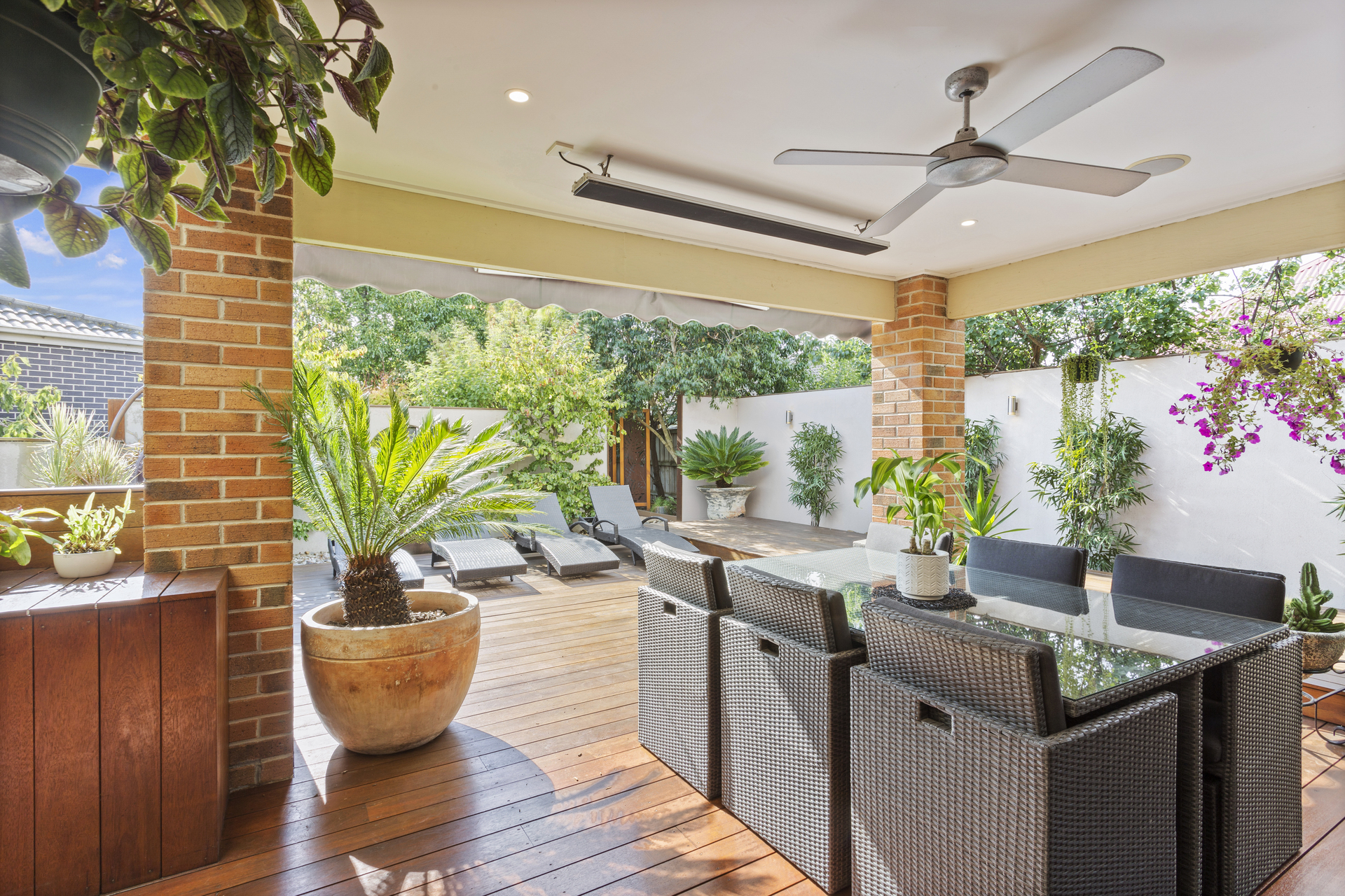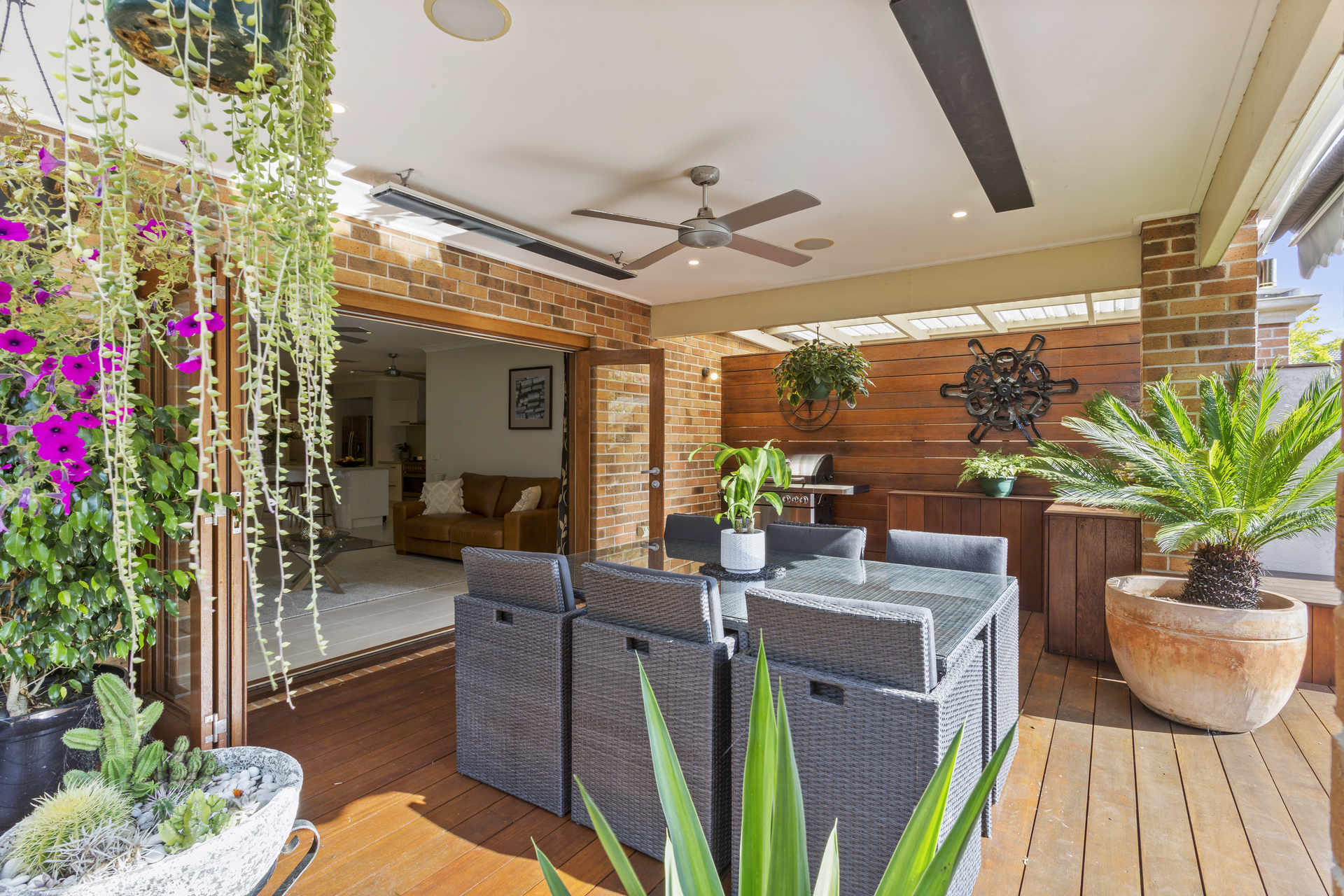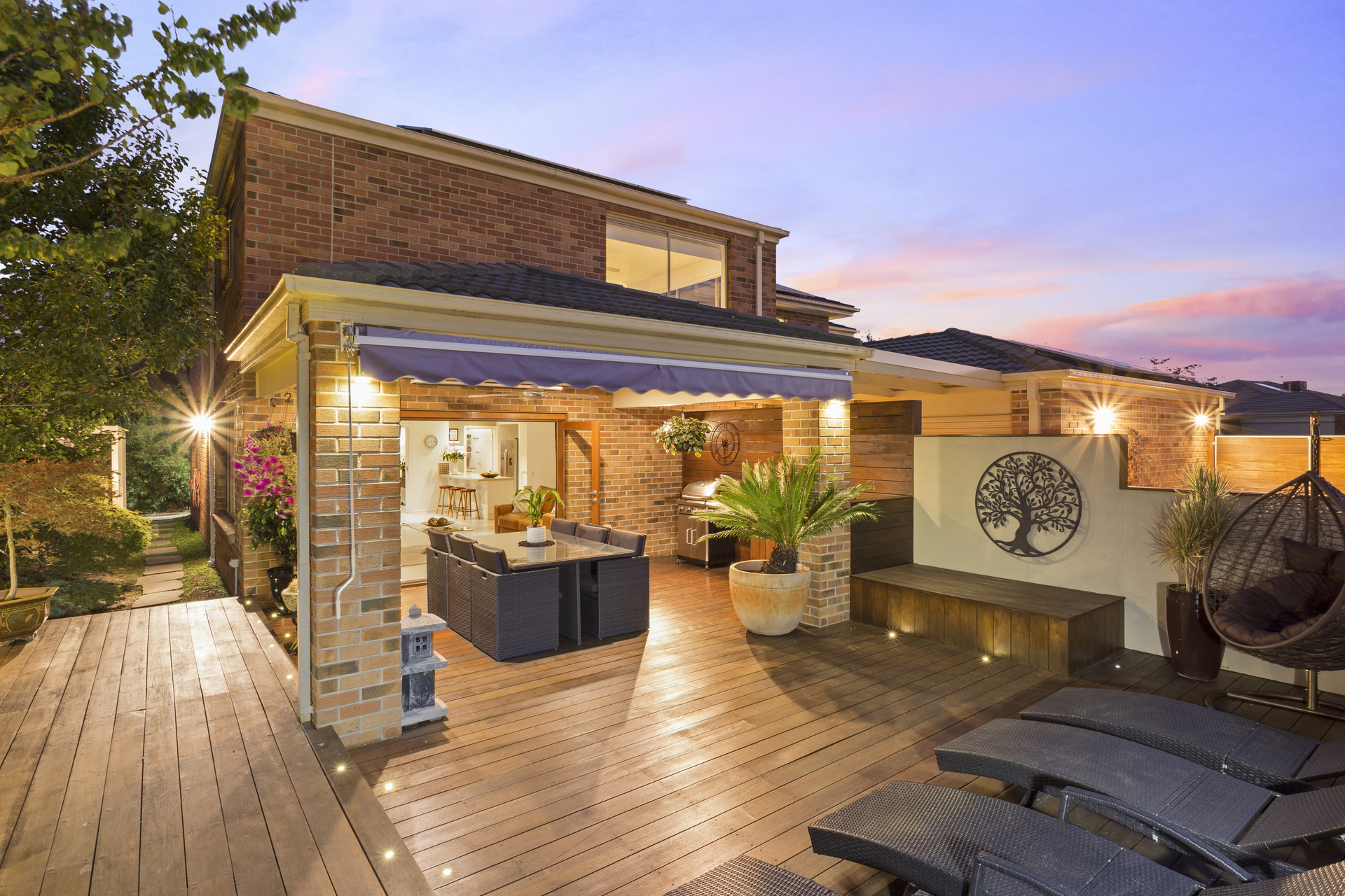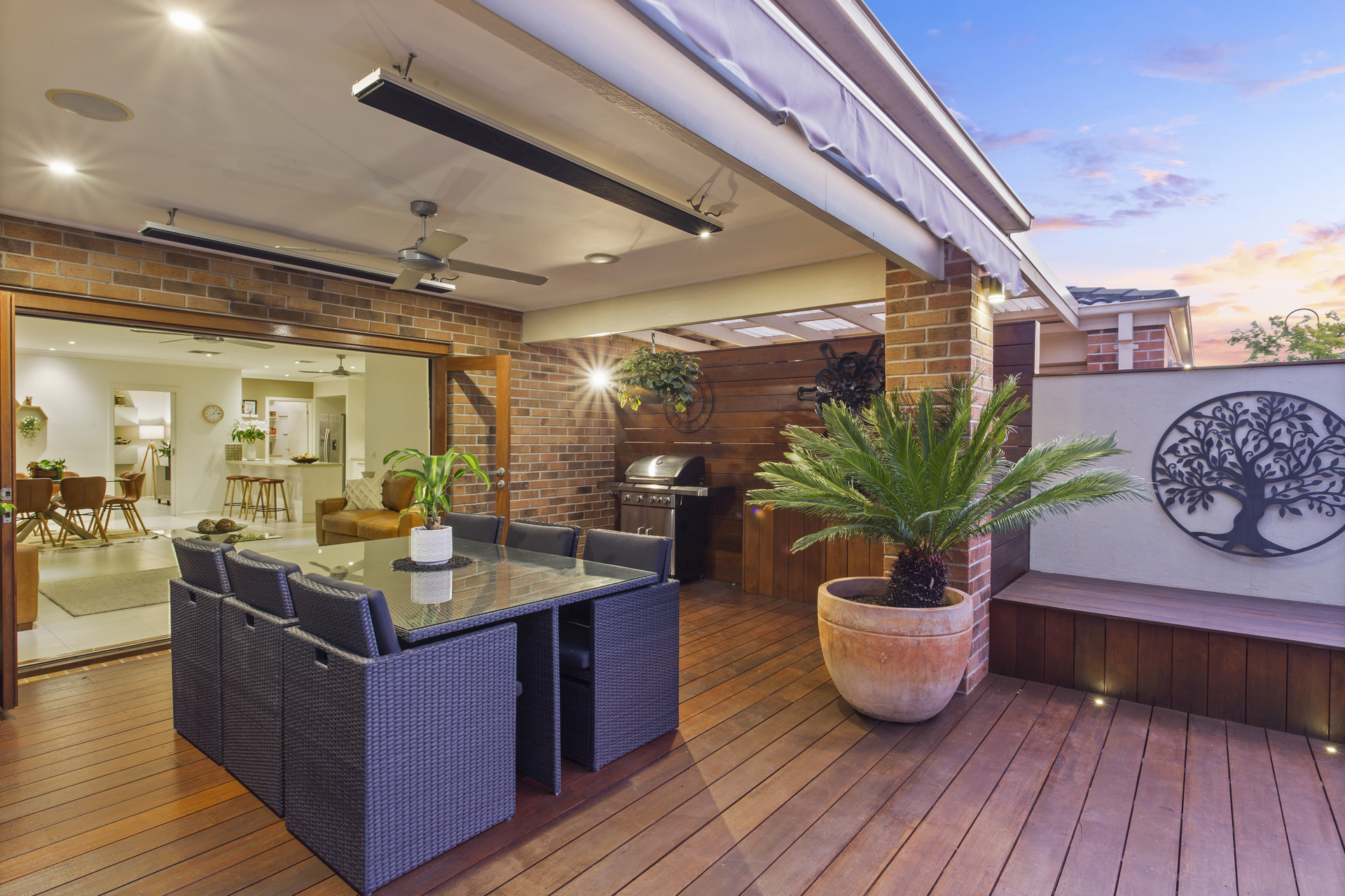 The covered, private Alfresco area is accessed through bi-fold timber doors which incorporate a full width retractable flyscreen. It also contains an additional retractable shade blind, extensive decking, up lighting, fan, dual ceiling mount heaters and a beautiful water feature.