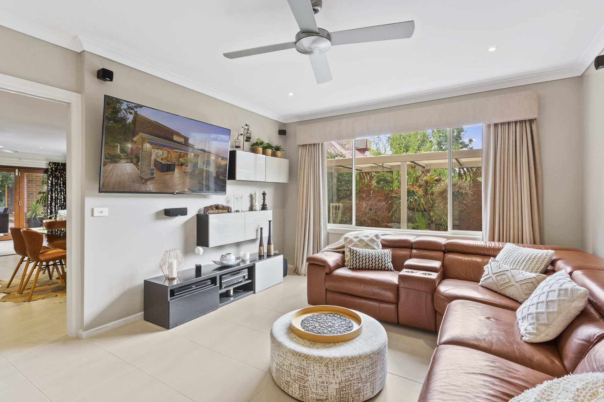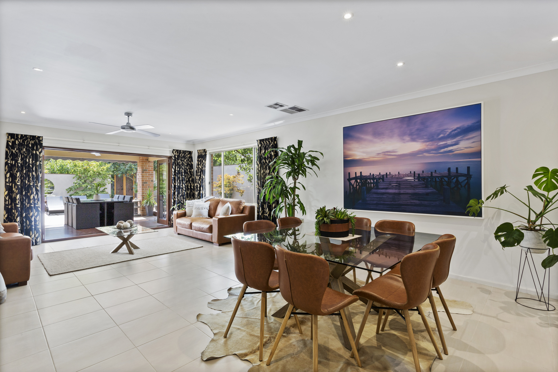 The spacious kitchen, dining, family area is an entertainer's dream, leading into a private TV/Theatre room with extensive integrated floor and wall cabinetry.