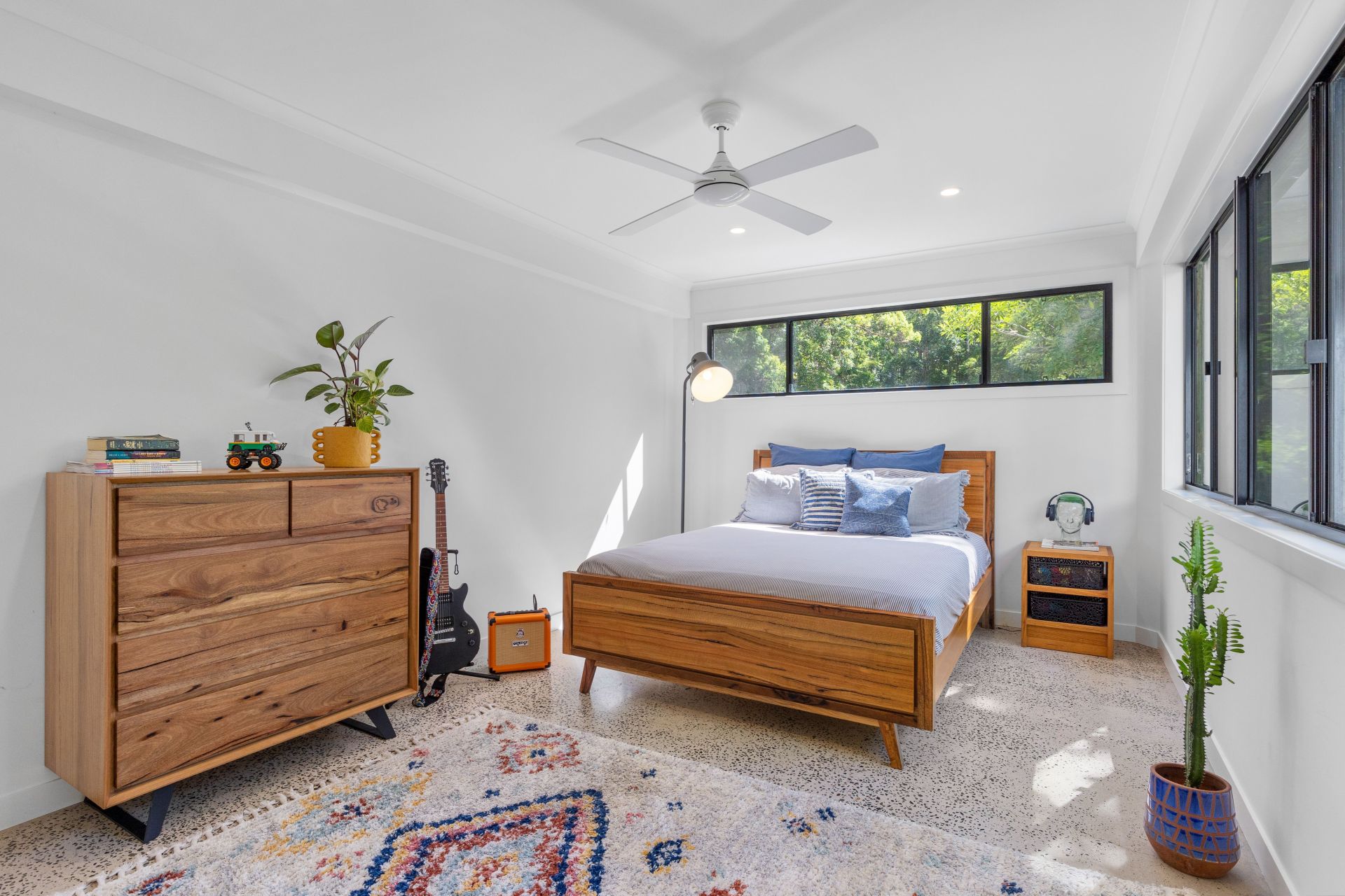 A large 4th bedroom with BIR's. The room features polished concrete floors with a gorgeous outlook of the property - This is your teenagers retreat or make it the master suite to get away from it all.