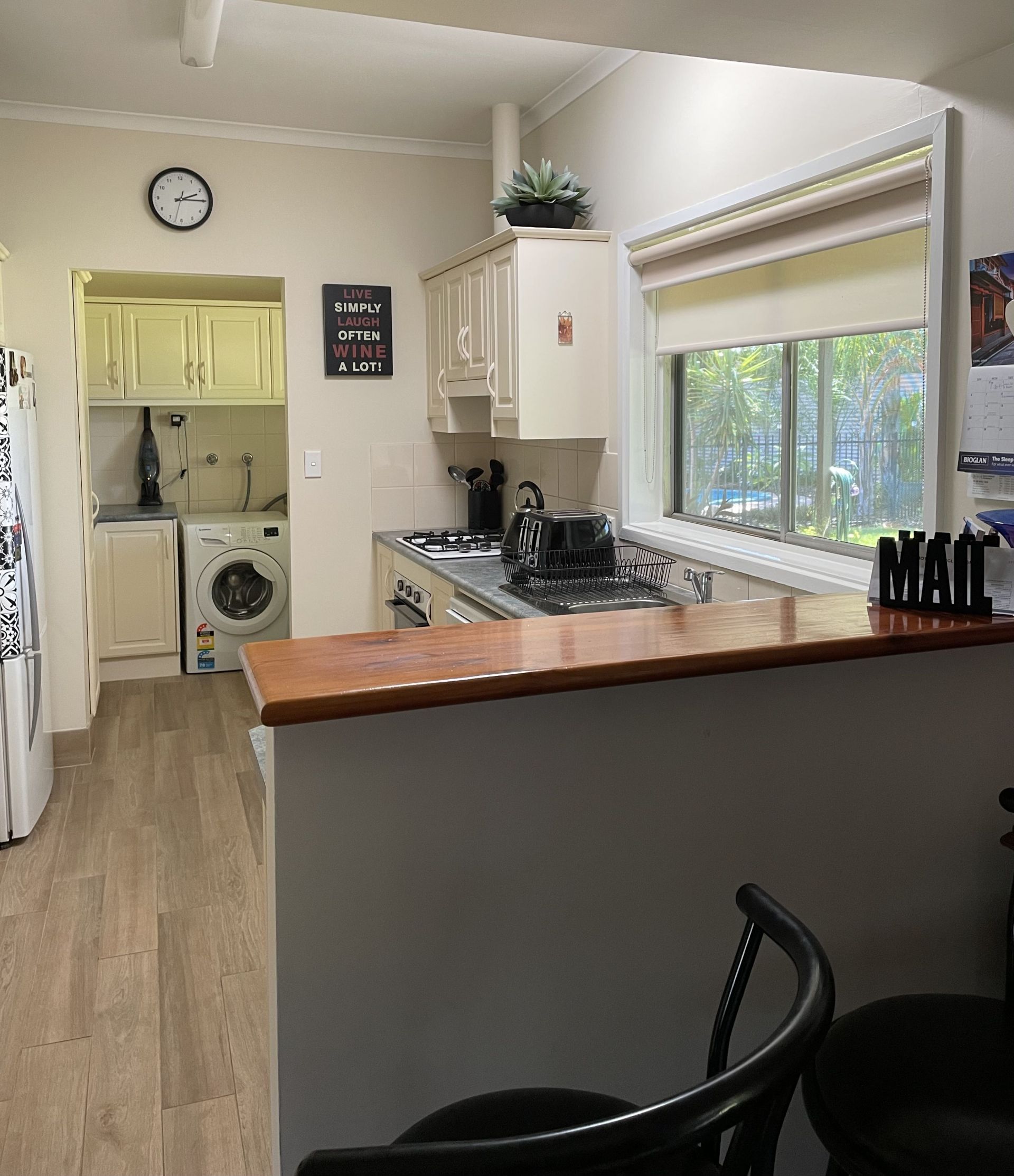 o Cool timber look tiles throughout