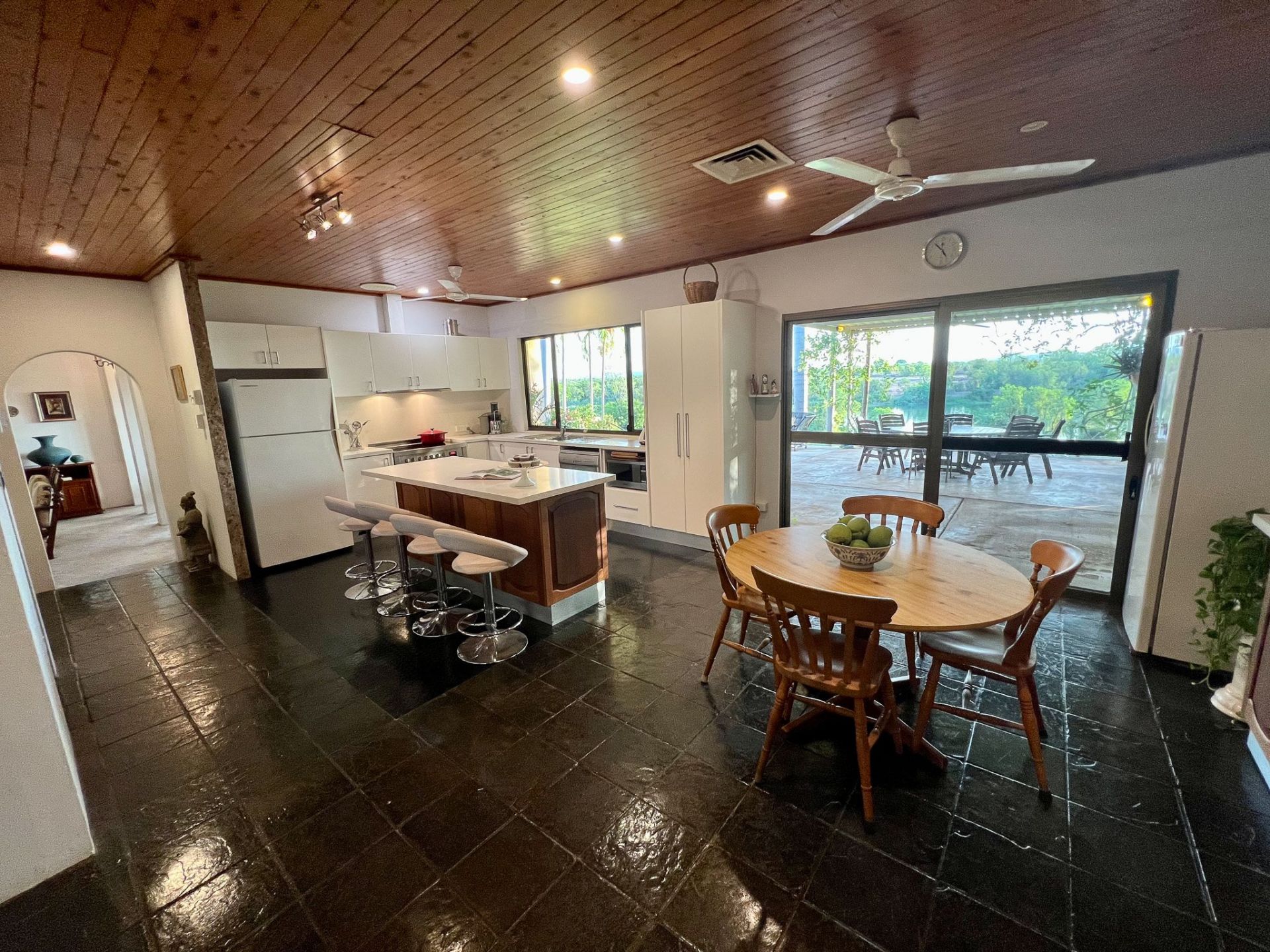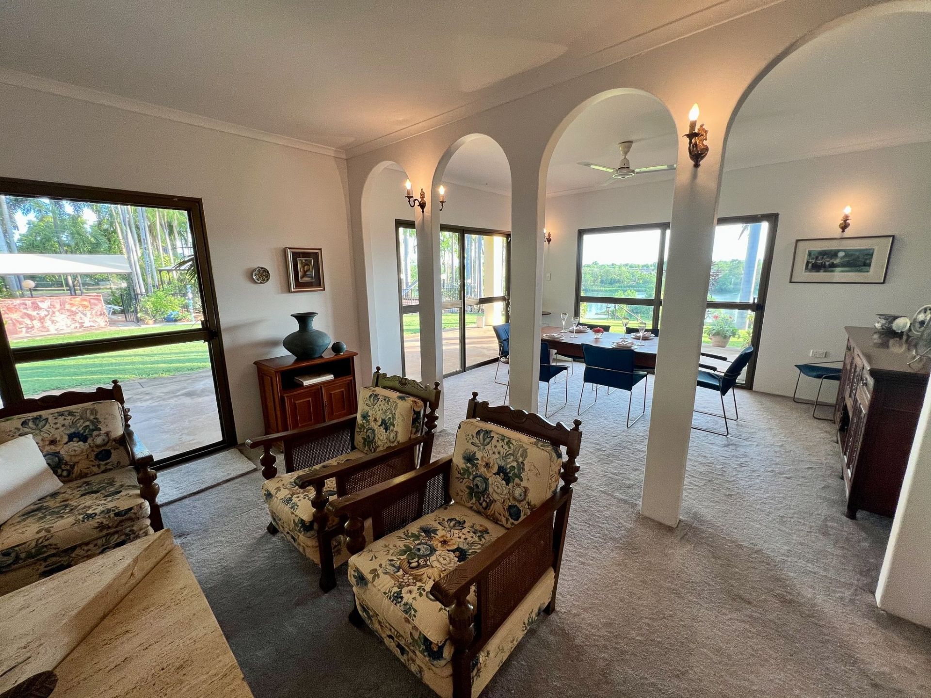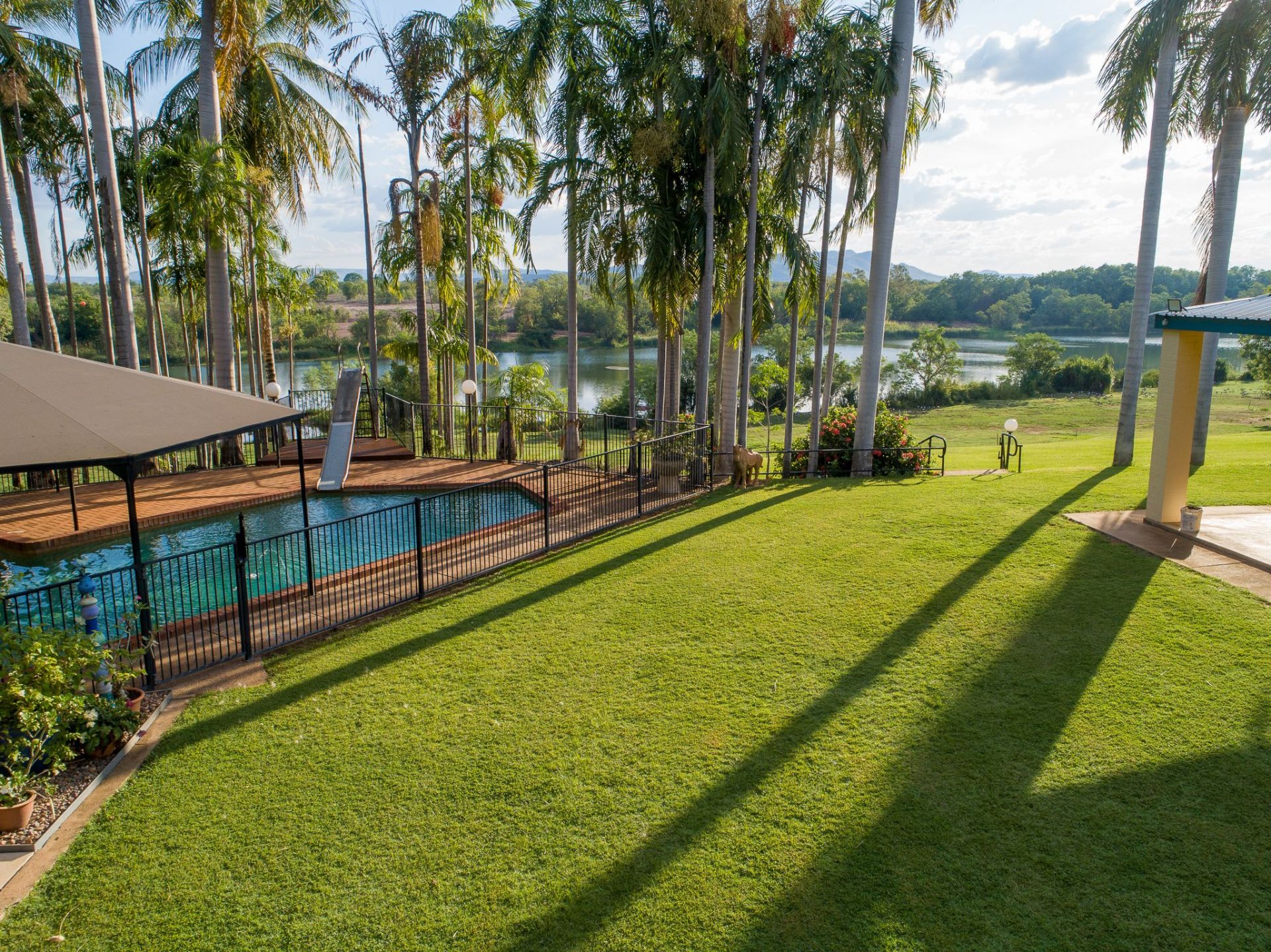• Overlooking the River is a 12.5 m concrete swimming pool with adjacent Powered barbeque area. The location of the pool, overlooking the river, could be even more stunning with a conversion to an infinity pool.