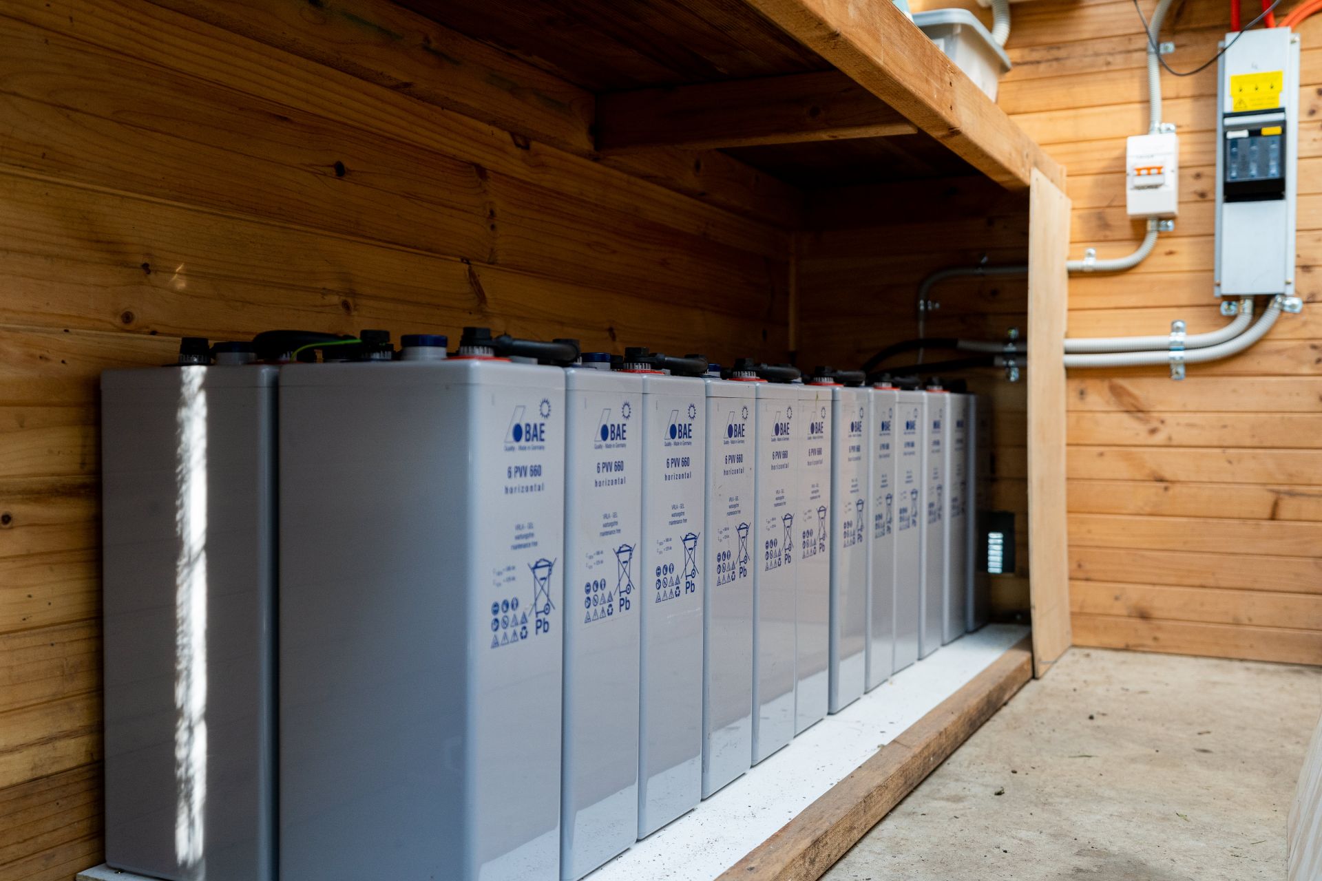 15 solar panels, 5kW Selectronic inverter with 48v battery bank & 7KVA Honda petrol generator