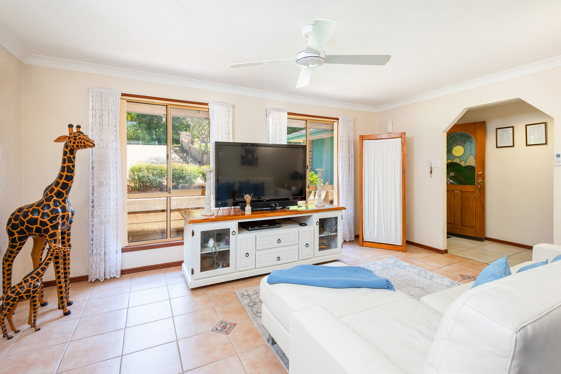 All three bedrooms have fans and built-ins, with the spacious master bedroom having a walk-in robe and ensuite. The master opens onto the enclosed patio, a space where you can sit peacefully and enjoy your morning coffee, or where family and friends can happily gather for celebrations.