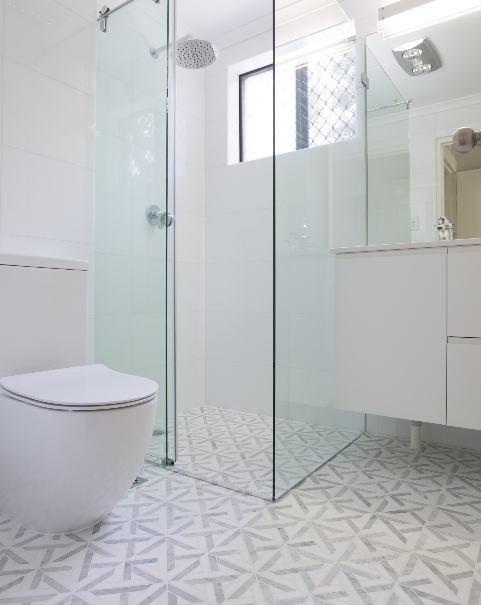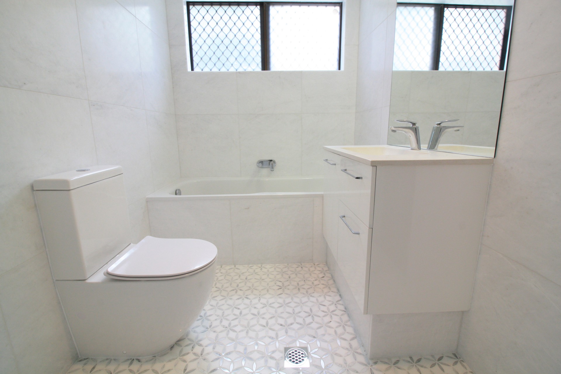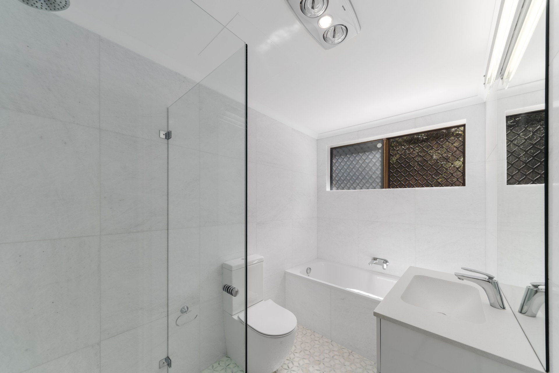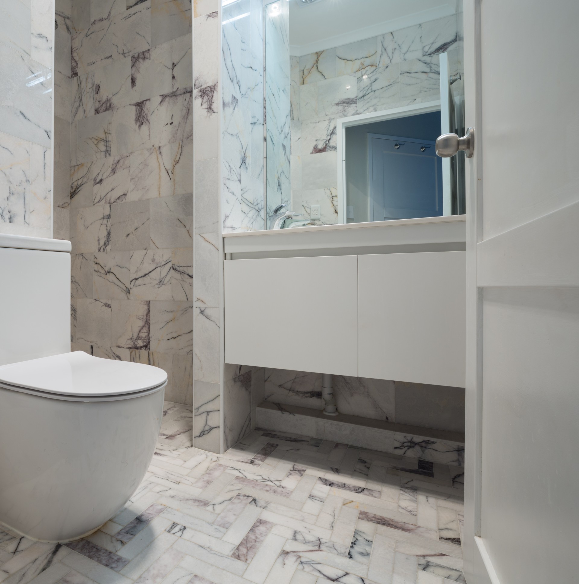 Three Timeless Marble bathrooms including 2 Ensuites. Main bathroom with separate bath and shower.