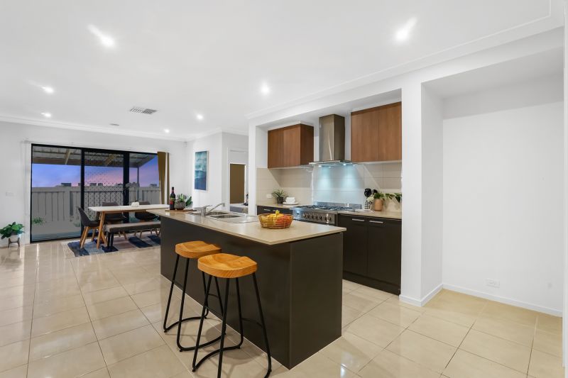 Offering a seamless combination of light-filled spaces, discover spacious open-plan living and dining, complemented by a versatile formal lounge ideal when escaping for some quiet time. A deluxe kitchen is chef-friendly kitchen with island bench and stainless steel appliances.