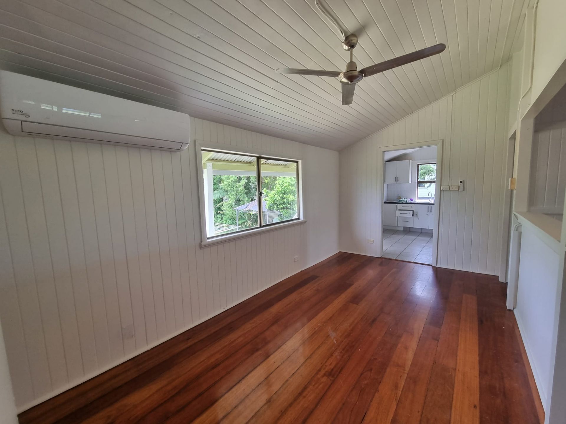 Two story timber house situated on a quiet street in Gordonvale. Freshly painted and renovated. Upstairs is 4 bedrooms, living room with polished wooden floors, kitchen and bathroom (all airconditioned). Downstairs is large storage/kids room (airconditioned) and workshop. Large yard is fenced with chook pen and shade/privacy trees around boundary. Carport has room for two cars or height for caravan /boat. Property is within easy walking distance of town centre/ schools/ supermarket/ service stations.